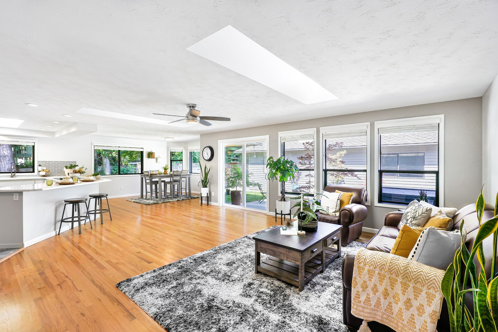 You’re welcomed into this beautiful, fully remodeled rambler with an easy-living floor plan, gleaming oak hardwood floors, fresh interior paint, brand-new carpet, and abundant natural light. The kitchen features a large centerpiece island with bar seating, ample cabinetry, new quartz countertops, stainless steel appliances, a beautiful glass backsplash, and more. Invite guests to mingle near the brick fireplace in the family room or enjoy appetizers in the casual dining area. Unwind in your primary retreat, which boasts a walk-in closet and a luxury ensuite featuring a dual vanity and a huge walk-in rain shower with a handheld wand, bench seating, and a designer tile surround. Two additional bedrooms await conveniently near a full guest bathroom, which has a jetted tub. Time will be well spent in the fully-fenced backyard entertaining on the large patio or relaxing in the hot tub. Work on your hobby projects in the oversized two-car garage or the detached two-car workshop, both intentionally designed with rubber tile floors. The home is centrally located just moments away from multiple community parks, Mill Creek Town Center, Downtown Snohomish, Boeing, Paine Field, and more.
