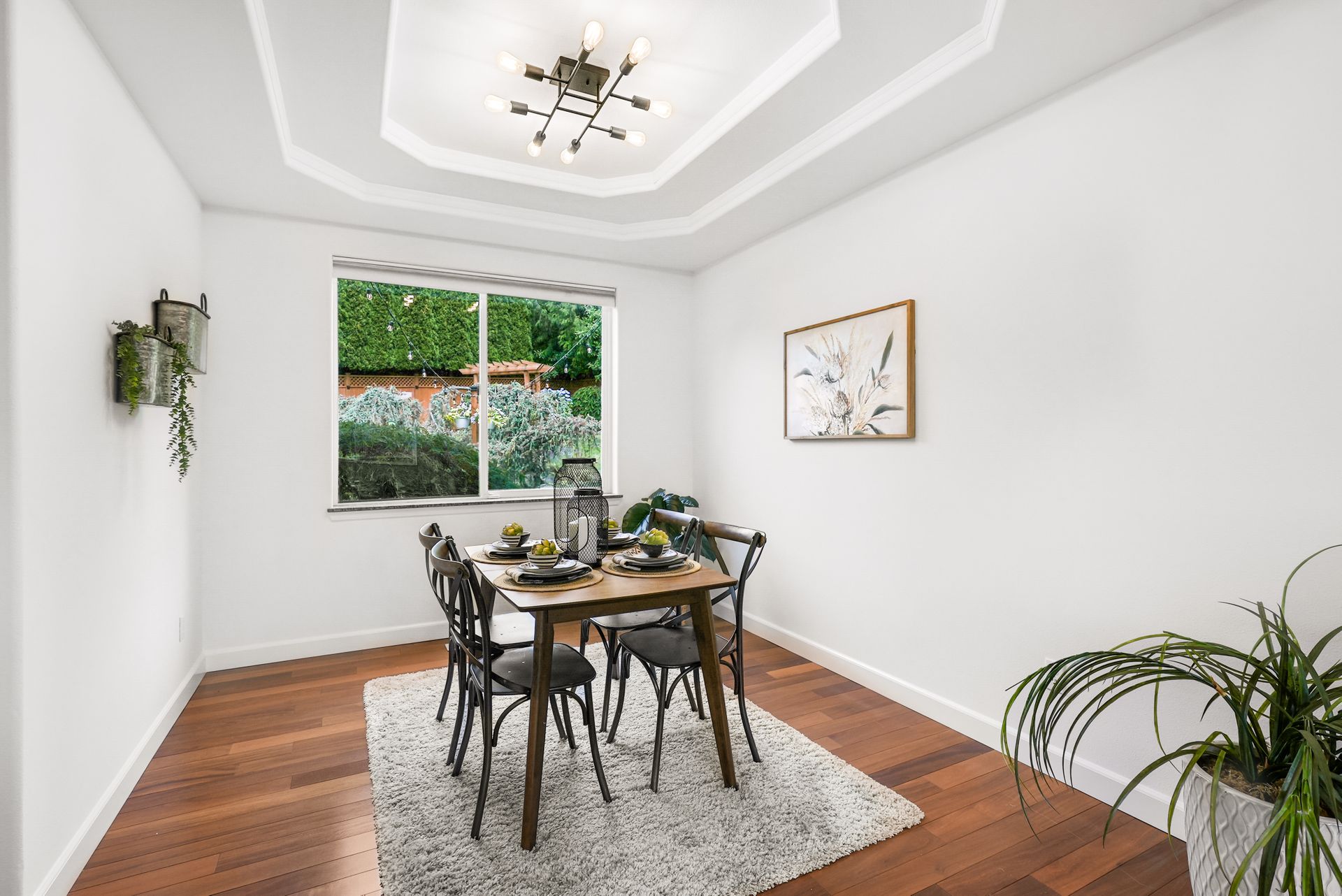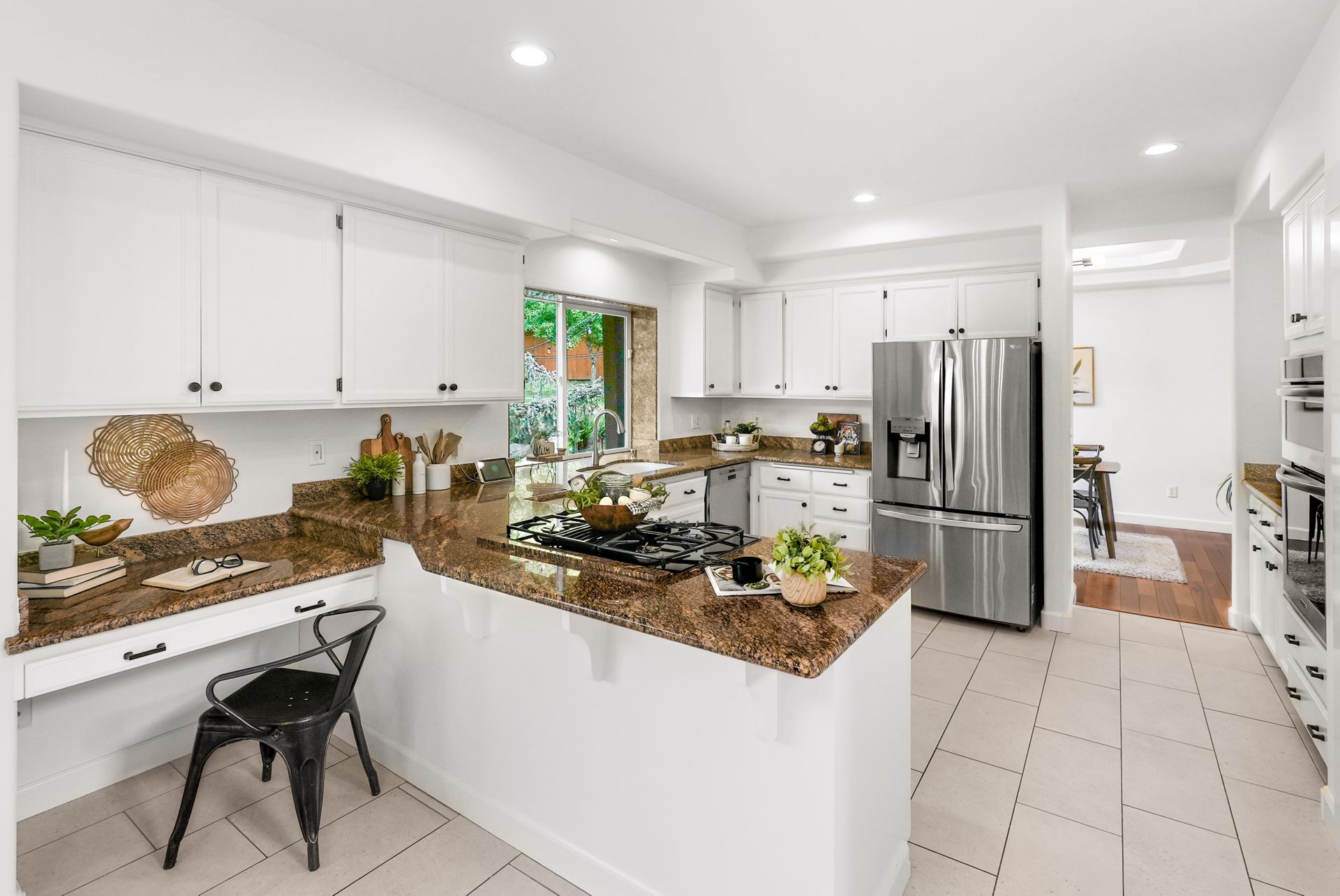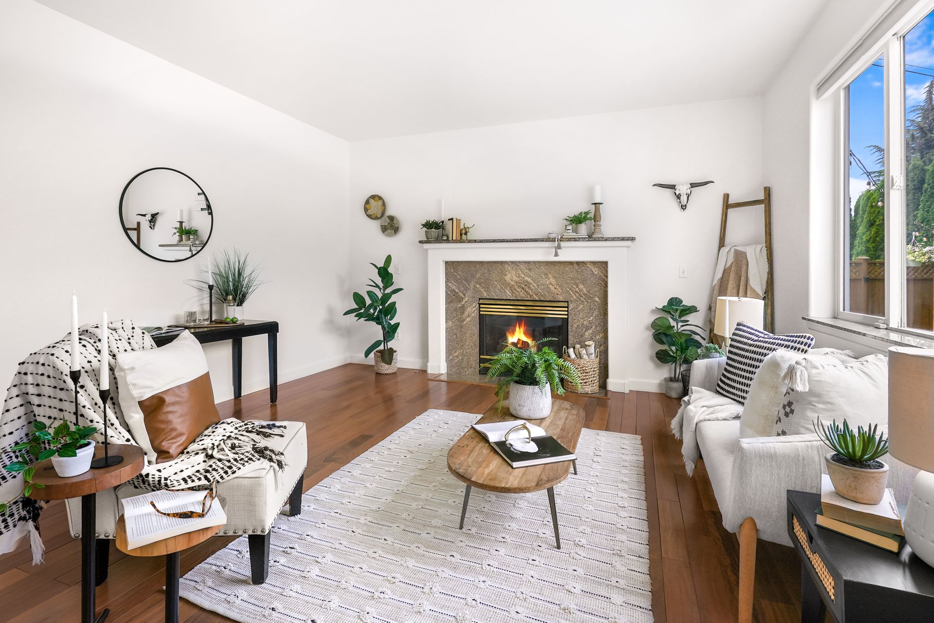Fresh interior and exterior paint set the tone for the bright, spacious living that awaits inside. A welcoming entryway helps keep daily routines organized, while the open-concept living and dining areas create the perfect setting for entertaining. The kitchen offers generous prep space, ample storage, and a built-in desk ideal for meal planning or homework. A sunny breakfast nook flows seamlessly into a cozy secondary living space centered around a warm fireplace. Step outside to a fully fenced backyard with vibrant mature landscaping and a covered patio, ready for year-round enjoyment. A stylishly updated powder room and main floor laundry, conveniently located just off the garage, add to the home’s thoughtful functionality.