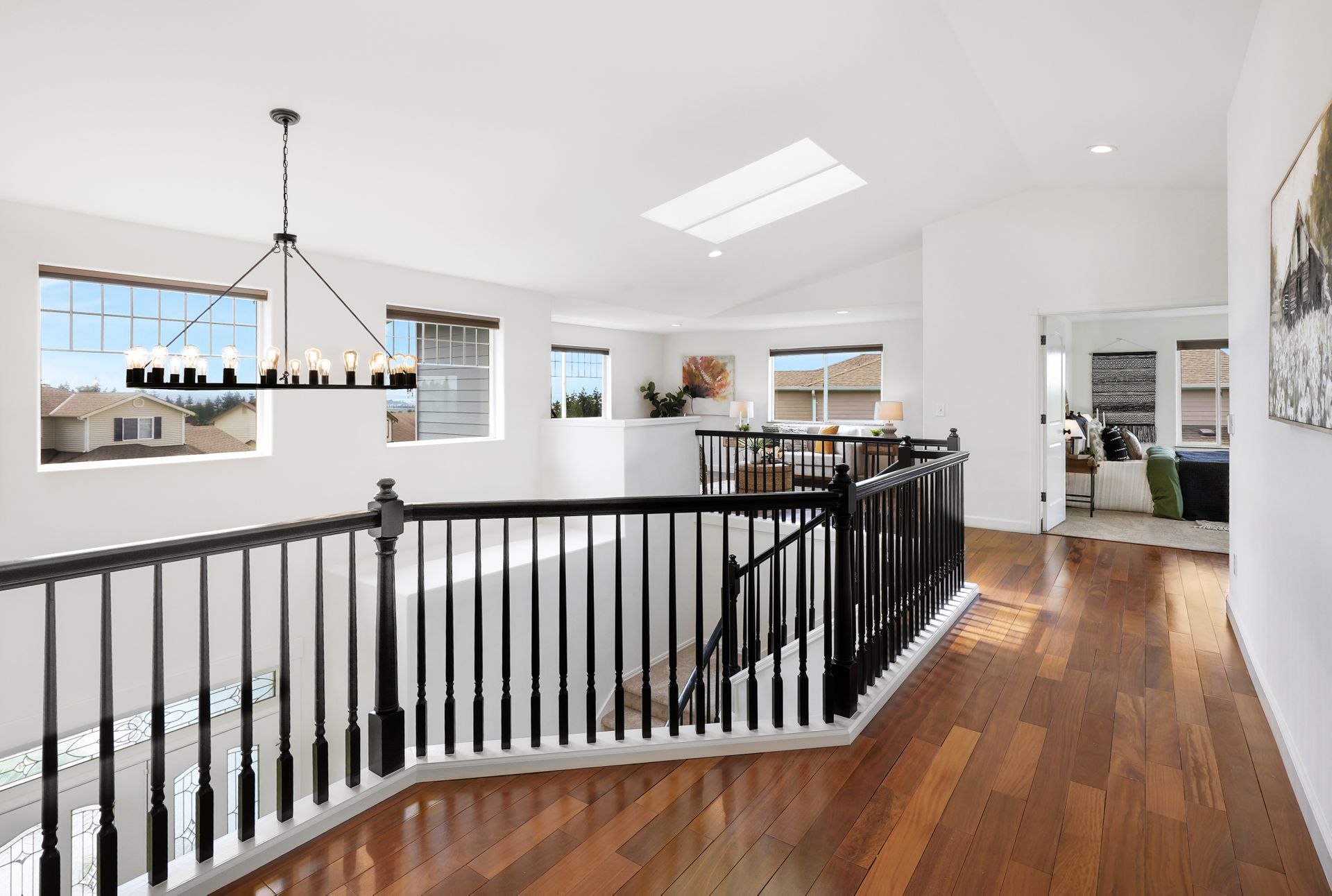 Upstairs, a versatile loft with water and mountain views offers endless possibilities, whether a bonus room, quiet reading corner, or creative workspace. The sunlit primary suite features a refreshed five-piece bathroom and a spacious walk-in closet, offering the perfect place ot unwind each night. Two additional bedrooms and a beautifully updated full bath provide space to grow, work from home, or host guests with ease.