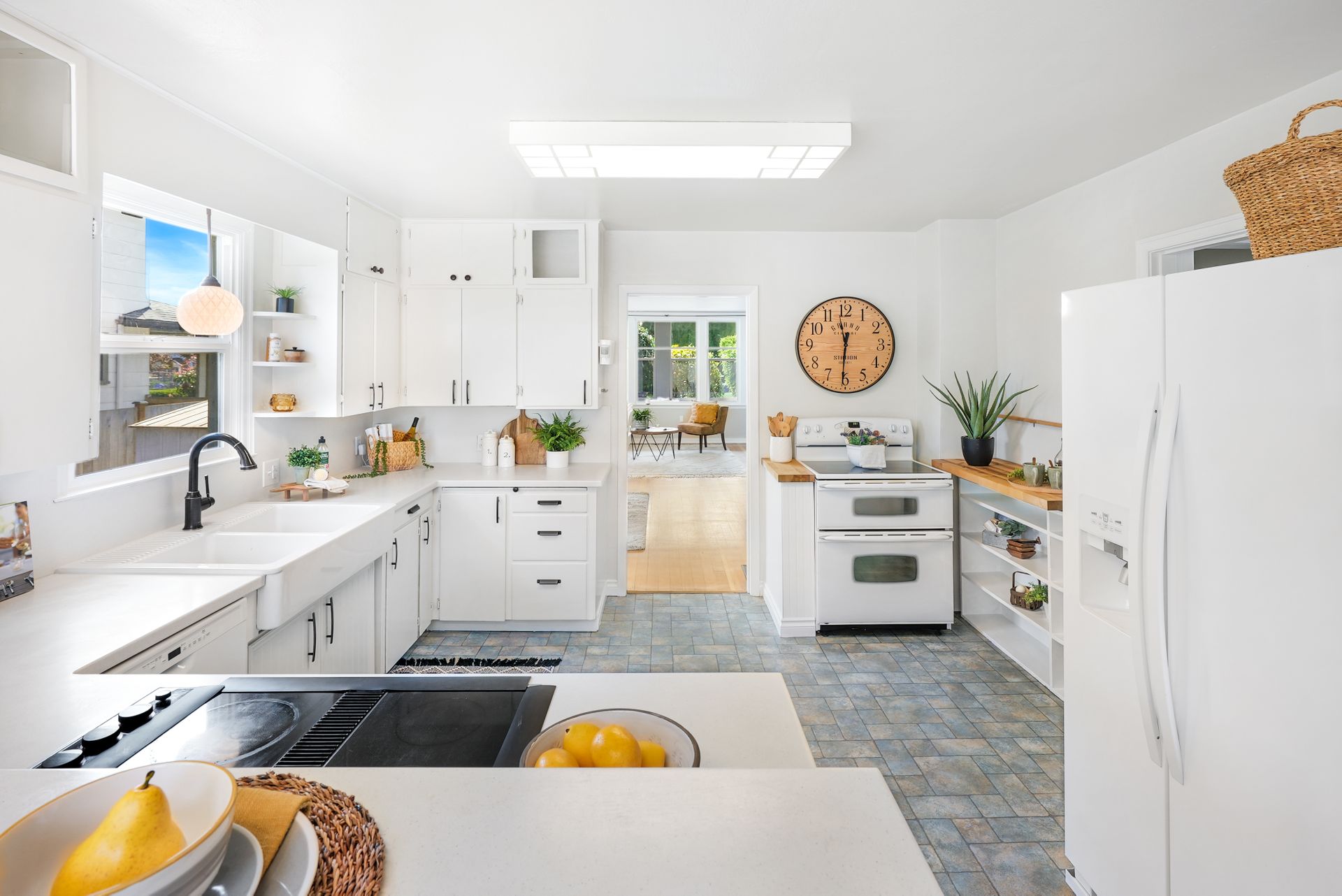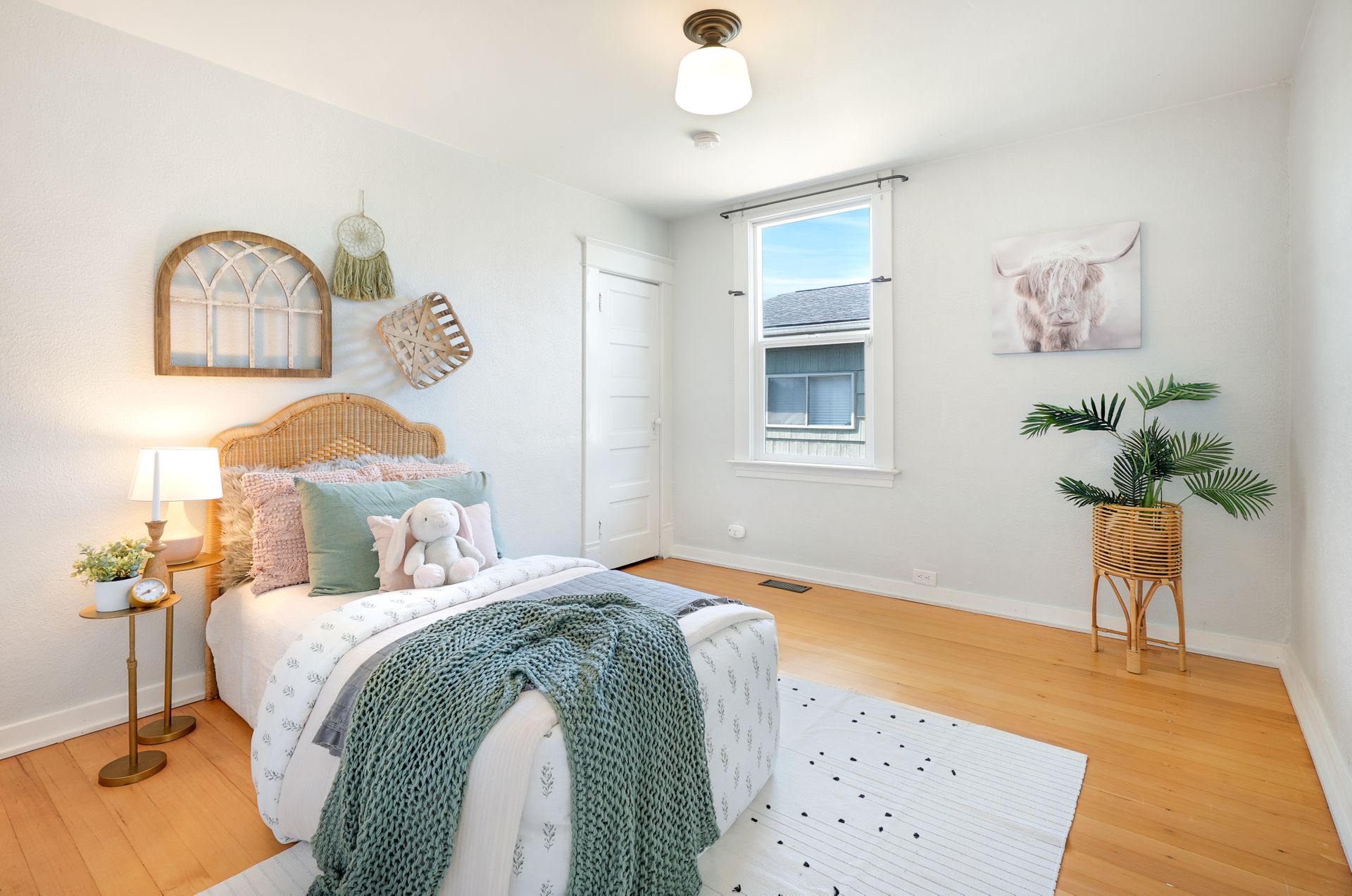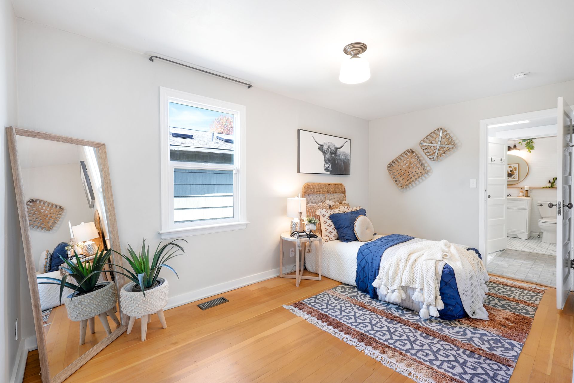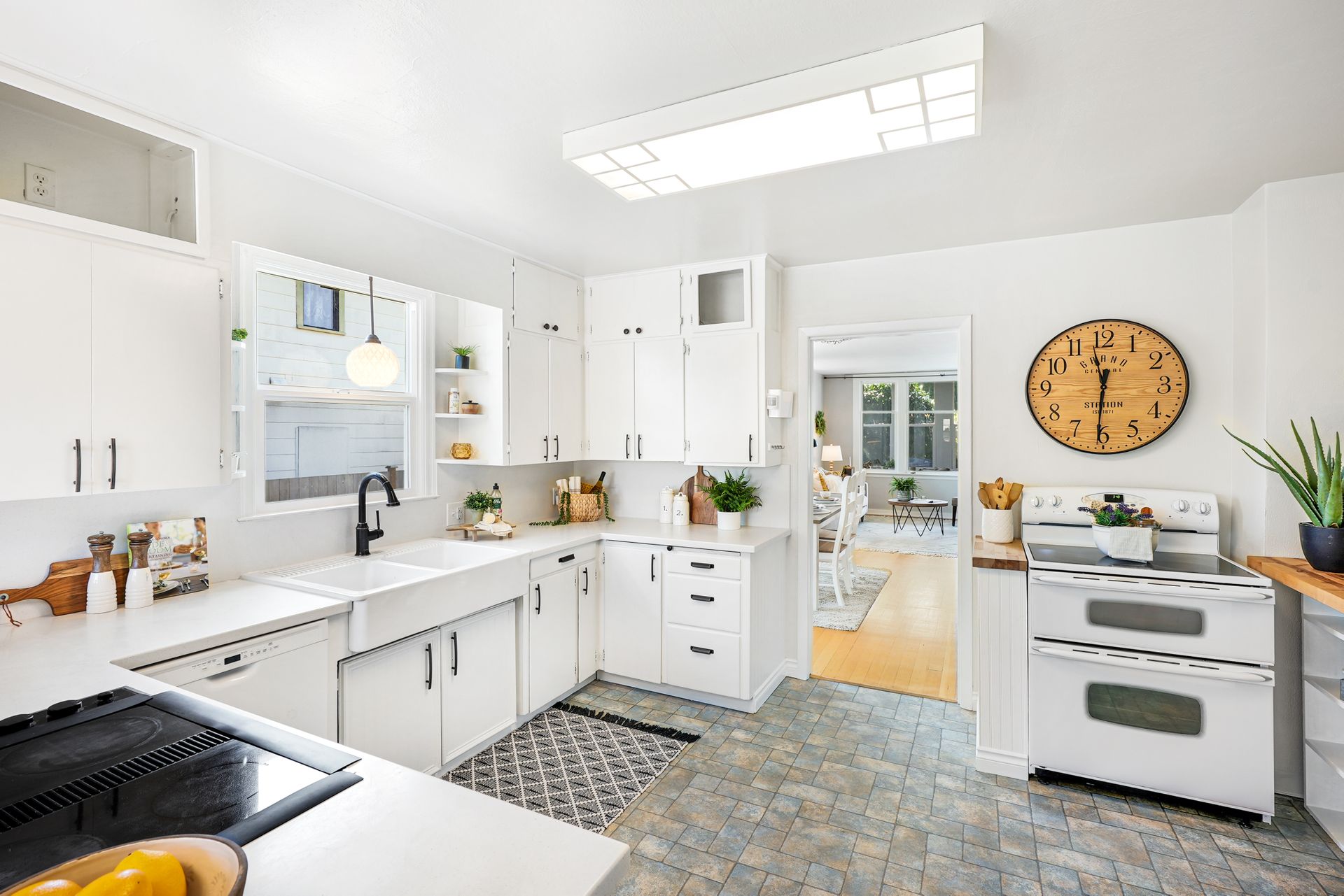 A seamless flow between the bright and airy family and dining room creates an ideal space for relaxing and entertaining. The stylish eat-in kitchen boasts ample storage, butcherblock counters, a farmhouse sink, a breakfast nook, and a peninsula. Two bedrooms on the main floor near the freshly updated bathroom are ideal for guests or a private home office. The spacious primary bedroom upstairs features two large closets.
