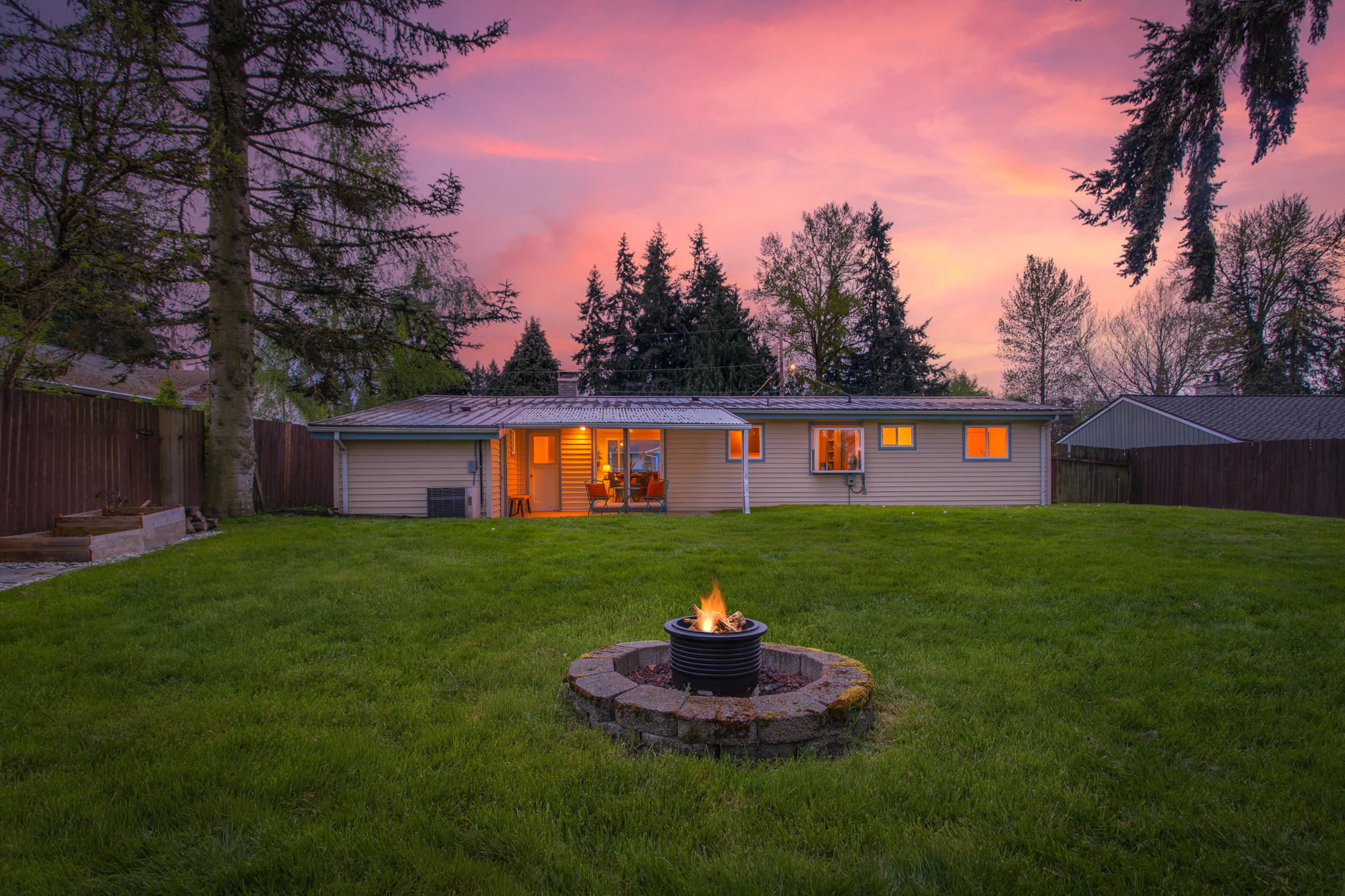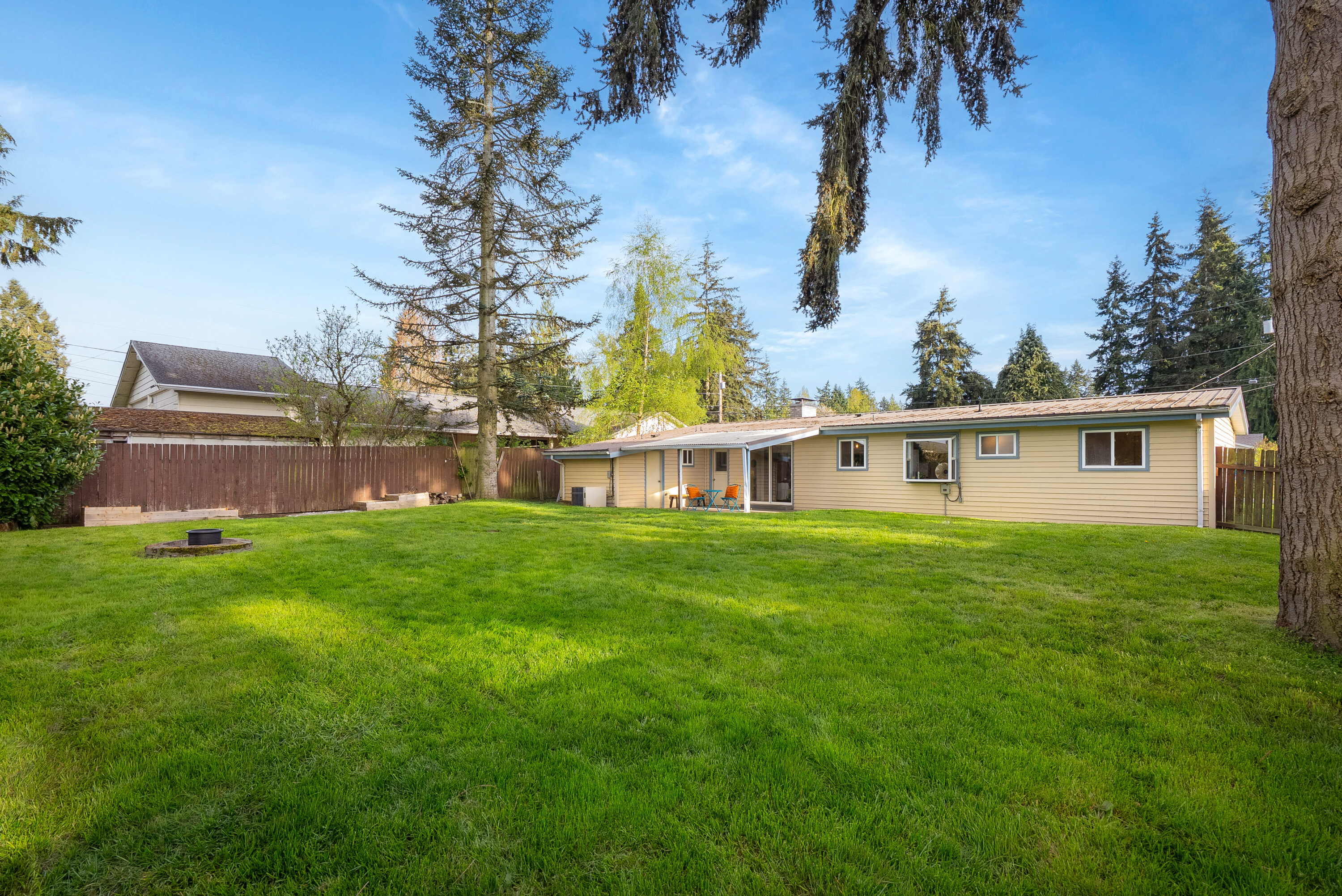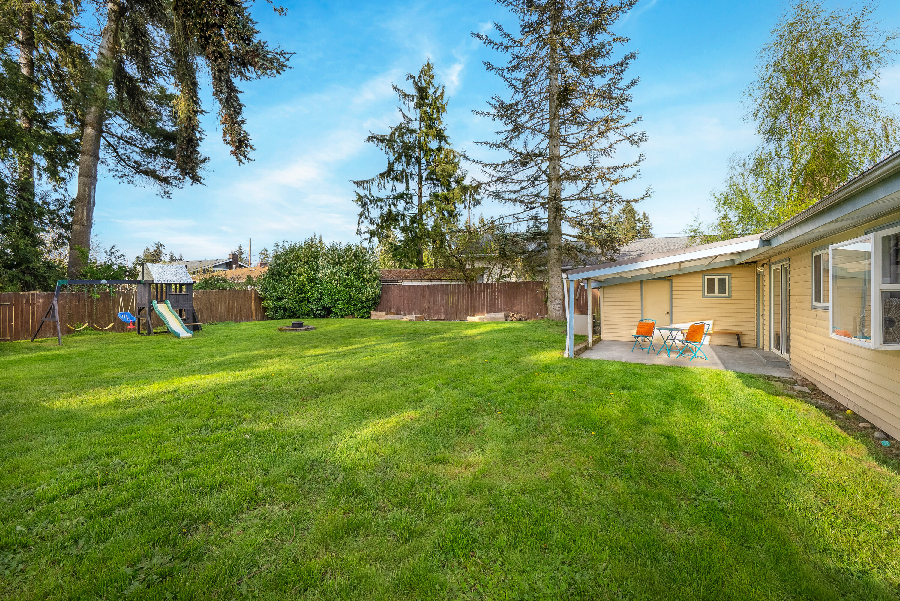 Set in the heart of Silver Lake with effortless access to commuting routes, daily amenities, and local schools, this Everett home perfectly combines comfort, convenience, and easy one-level living. You are welcomed inside by newly refinished hardwood floors and fresh interior paint, creating a bright, refreshed feel throughout. The spacious front living room is filled with natural light from oversized windows and anchored by a cozy fireplace, offering the perfect place to gather or unwind. The kitchen provides ample storage and connects seamlessly to a sunny dining nook, with direct access to the outdoor living space that features a large covered back patio, fully fenced backyard, playset, and storage shed. A versatile bonus room adds flexibility for a home office, media space, or inspiring play area, while the combined laundry and ¾ bath enhances everyday ease. Down the hall, three bedrooms are paired with an updated full bathroom, creating a comfortable and functional layout for a variety of lifestyles.