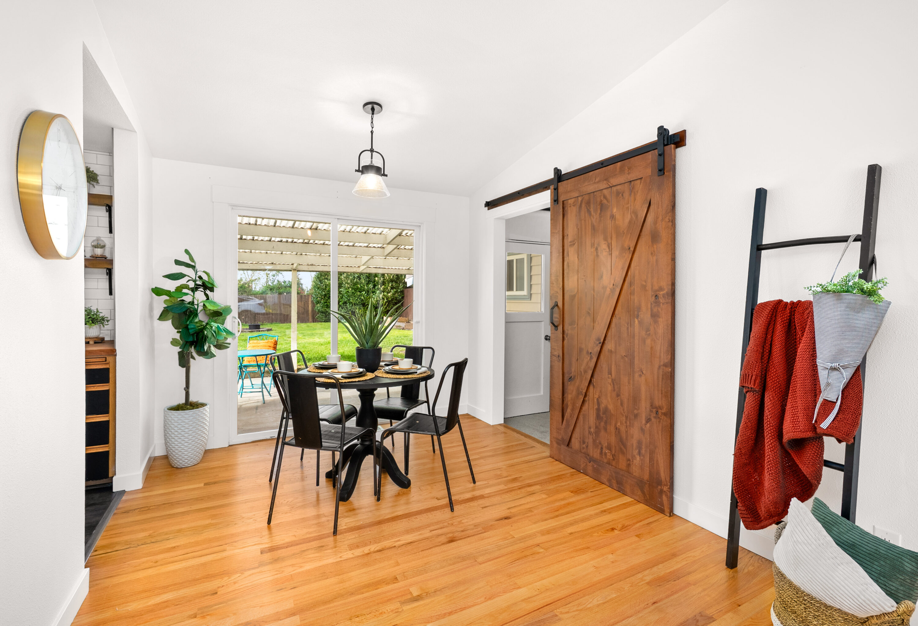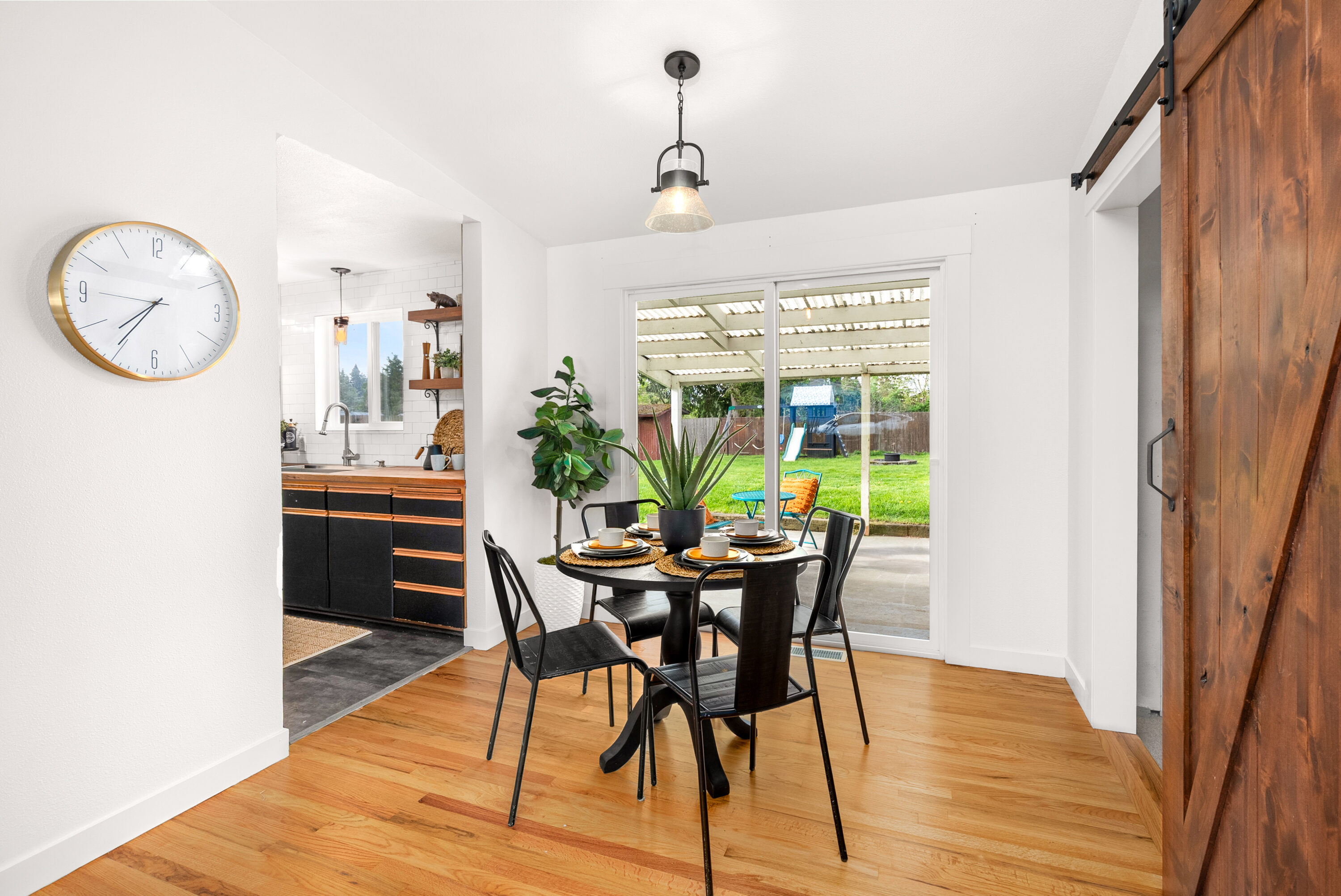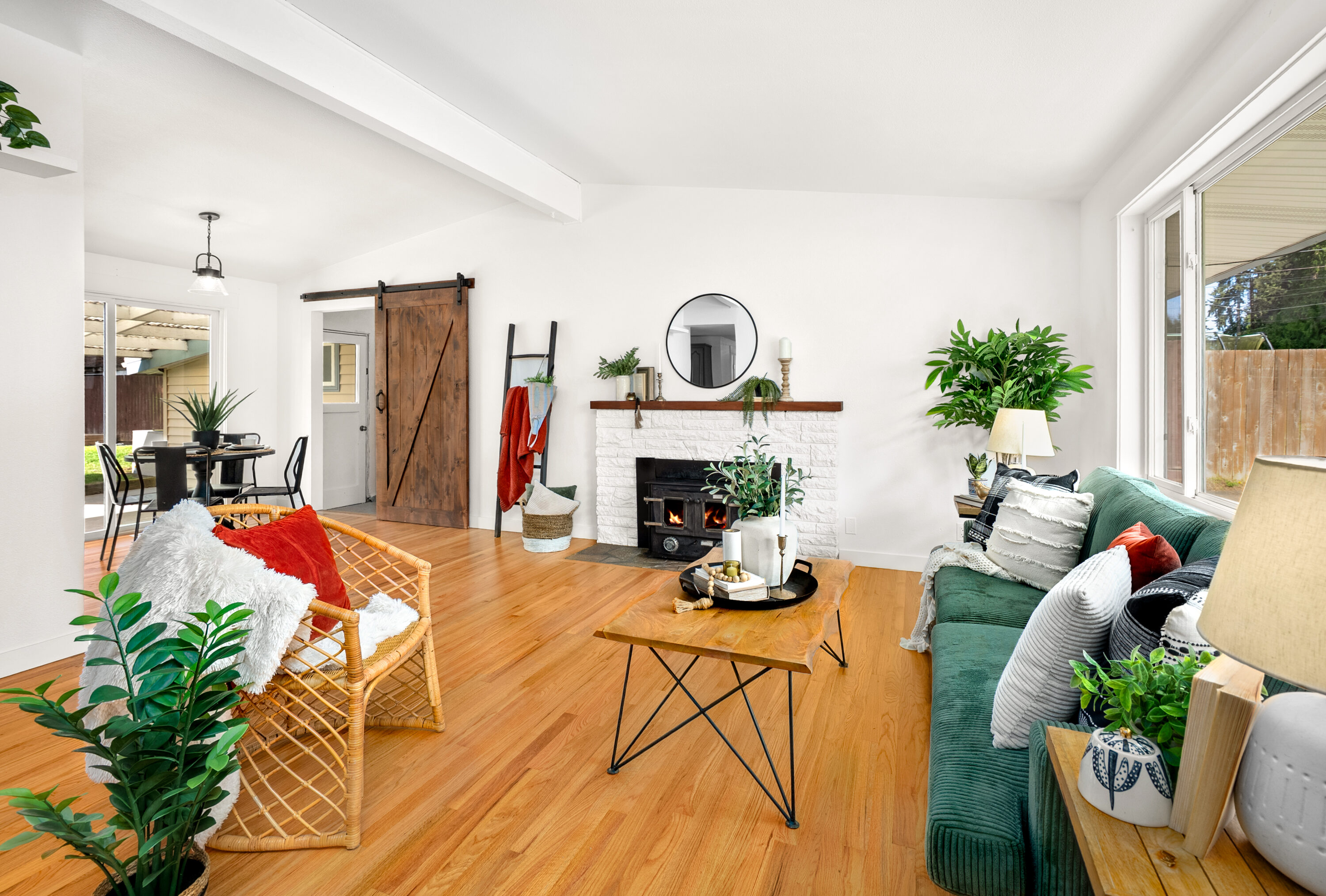 Set in the heart of Silver Lake with effortless access to commuting routes, daily amenities, and local schools, this Everett home perfectly combines comfort, convenience, and easy one-level living. You are welcomed inside by newly refinished hardwood floors and fresh interior paint, creating a bright, refreshed feel throughout. The spacious front living room is filled with natural light from oversized windows and anchored by a cozy fireplace, offering the perfect place to gather or unwind. The kitchen provides ample storage and connects seamlessly to a sunny dining nook, with direct access to the outdoor living space that features a large covered back patio, fully fenced backyard, playset, and storage shed. A versatile bonus room adds flexibility for a home office, media space, or inspiring play area, while the combined laundry and ¾ bath enhances everyday ease. Down the hall, three bedrooms are paired with an updated full bathroom, creating a comfortable and functional layout for a variety of lifestyles.