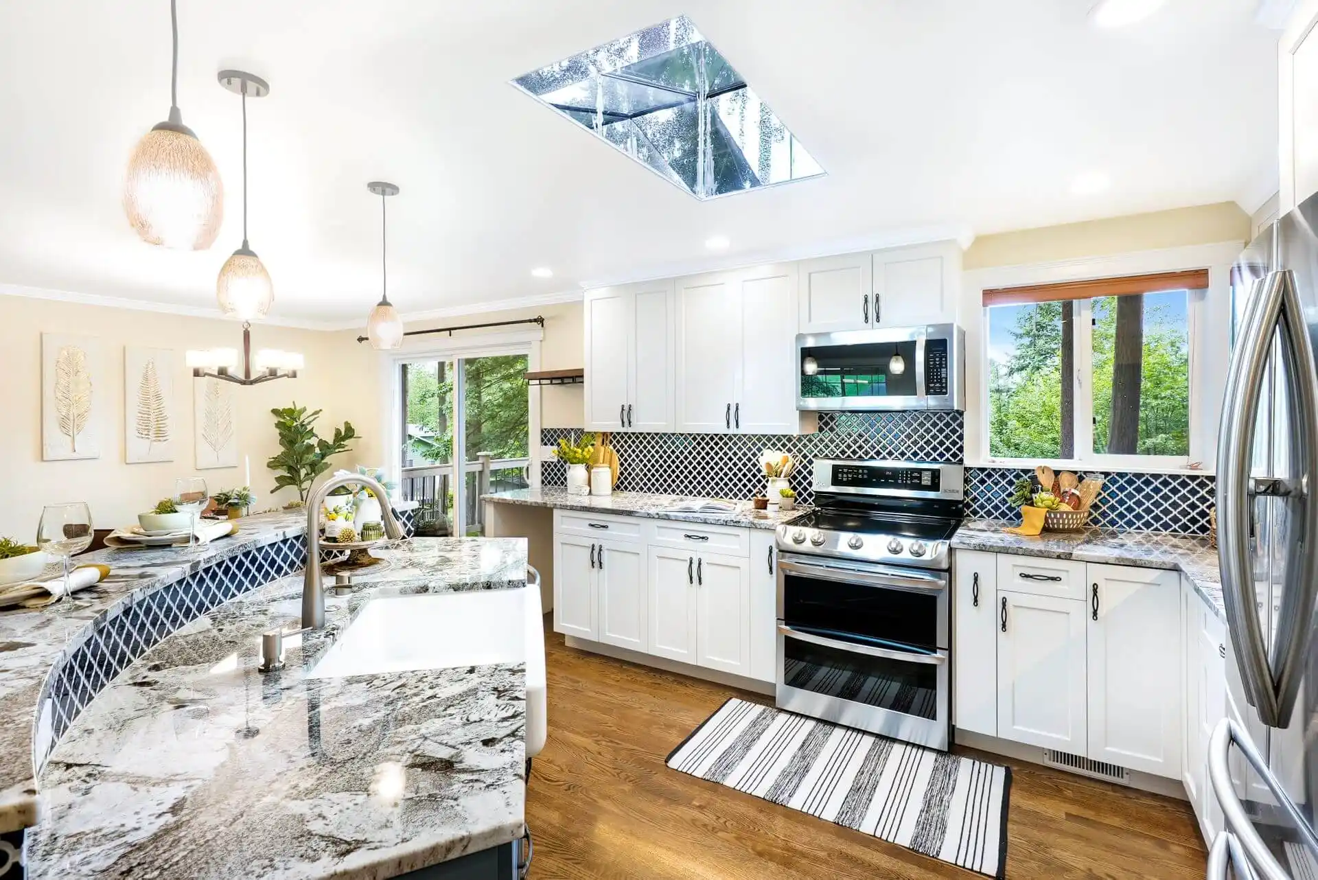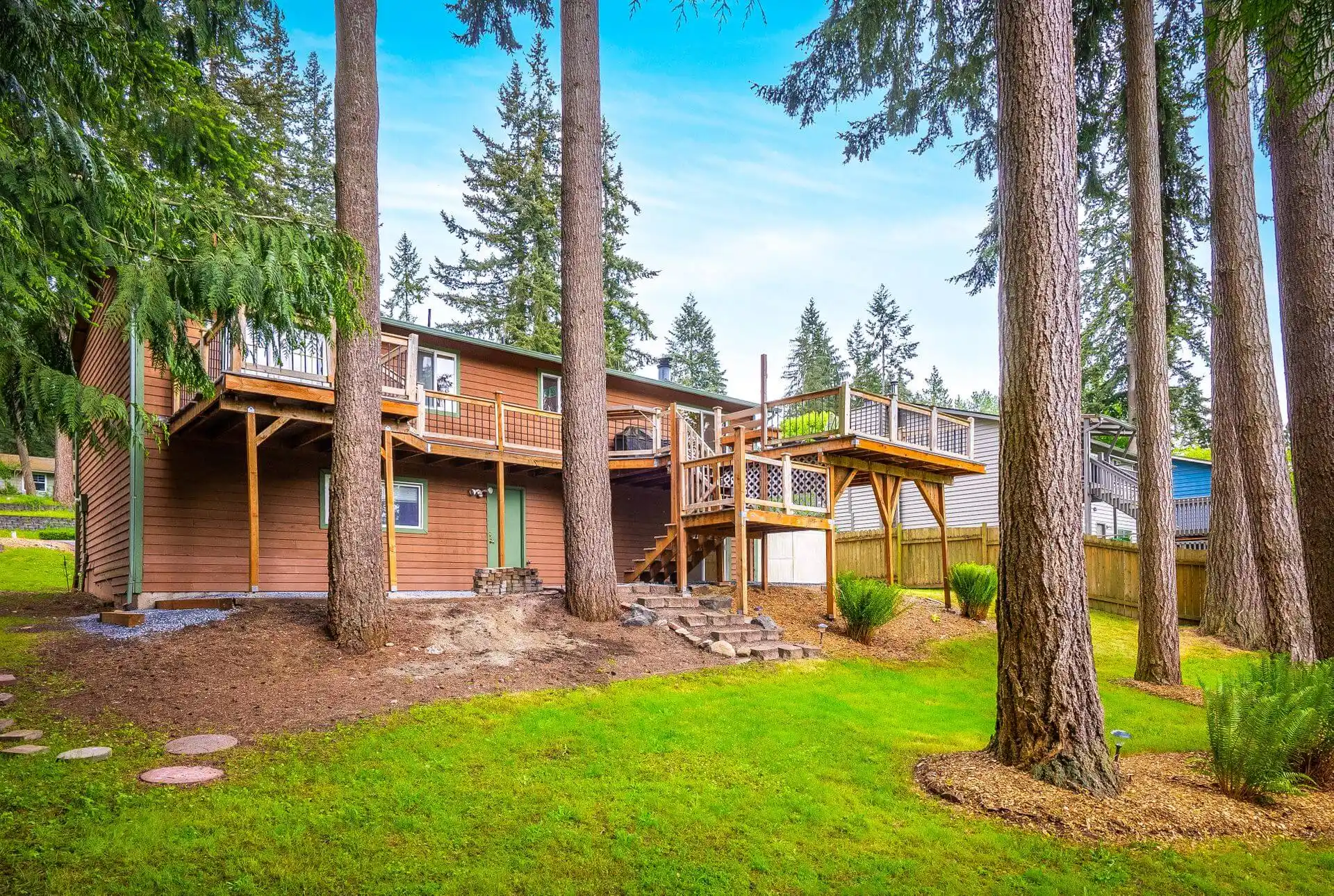 Located in a private Lake Stevens neighborhood, this exceptional home was fully remodeled in 2016 to bring you a modern and stylish take on the traditional split-level layout. A long brick paver pathway, raised garden beds, and well-appointed landscaping will lead you to the front door and into the vaulted entry. Extensive renovations begin here and continue throughout; nearly every detail has been upgraded, including stunning refinished hardwood floors, a contemporary color palette, updated bathrooms, new light fixtures, and hardware. The easy-living floorplan creates the ideal environment for hosting and invites guests to relax by the fireplace in the living room or mingle around the oversized centerpiece island as you prepare your favorite recipes in the open-concept kitchen. Designer backsplash in the kitchen will serve as the perfect backdrop for the luxury stainless steel appliances, custom cabinetry, and gorgeous granite countertops in the kitchen. Look forward to having multiple ways to entertain and relax outdoors, with an expansive upper deck that extends the entire length of the home and continues into the private yard below. Downstairs, you’ll find a freshly designed utility room and a spacious bonus room ready to be transformed into a secondary living space, a home theater, or a game room – endless possibilities! The primary bedroom awaits as your evening comes to an end, with private access to a secluded portion of the deck through glass double doors, boasts beautiful views of the mature Evergreens & lush greenery, and a contemporary ensuite with impressive updates, including a custom vanity and floor-to-ceiling custom tiles in the walk-in shower. Enjoy living near the heart of Lake Stevens, with top-rated schools, Hwy 9 & 2, shopping & restaurants, including Frontier Village and the future Costco, only moments away!