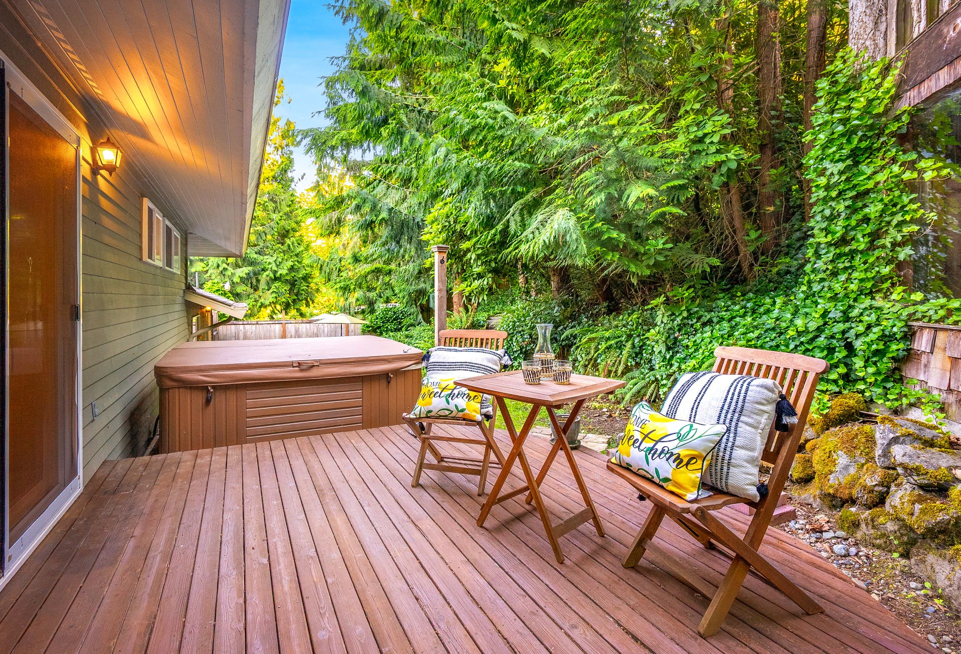Three generously sized bedrooms and an updated hall bathroom with a dual wrap-around vanity, await on the upper level. The spacious primary bedroom is designed to bring comfort and relaxation to your everyday life — a walk-in closet, a personal ensuite, and a private deck with a hot tub. On the lower level, you’ll find a guest bedroom conveniently located near a bathroom, and a versatile flex space is ready to be transformed into a game room or a theater, offering endless possibilities to suit your lifestyle.