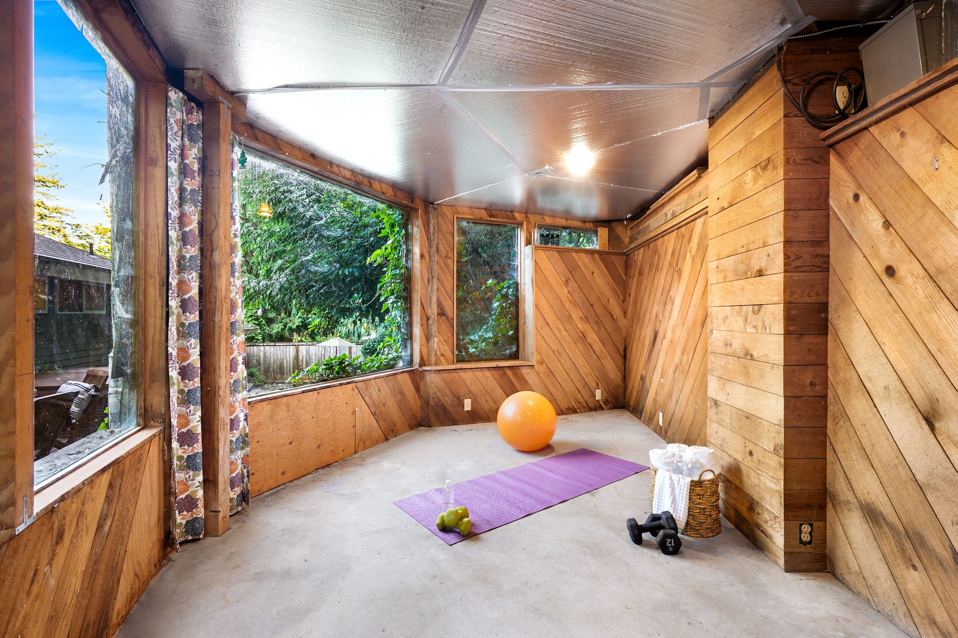 In the backyard, there are multiple outdoor living spaces, each intentionally designed and carefully landscaped to create a tranquil sanctuary ideal for relaxing and entertaining; a sprawling lower patio invites you to unwind, and an intimate upper area boasts a fire pit and a gazebo-covered patio with heat, a built-in stereo system, and a refreshing fan. Plus, there is an outdoor bungalow/detached bonus space perfect for a yoga studio, storage, or a gym.