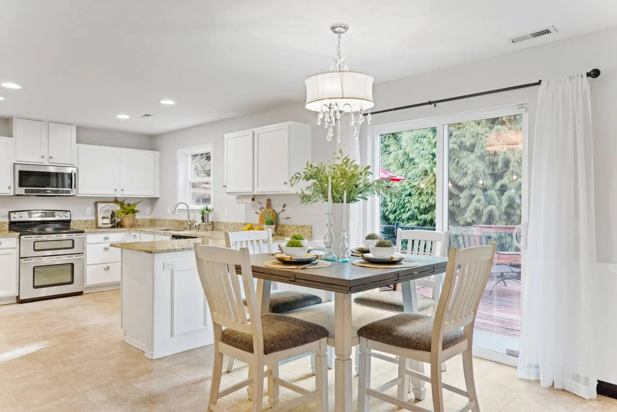of storage in the oversized pantry, and ample counter space. For easy indoor to outdoor living, open the slider to the backyard that is designed with entertaining in mind. Relax with your friends and family on the back deck with custom bench seating or take advantage