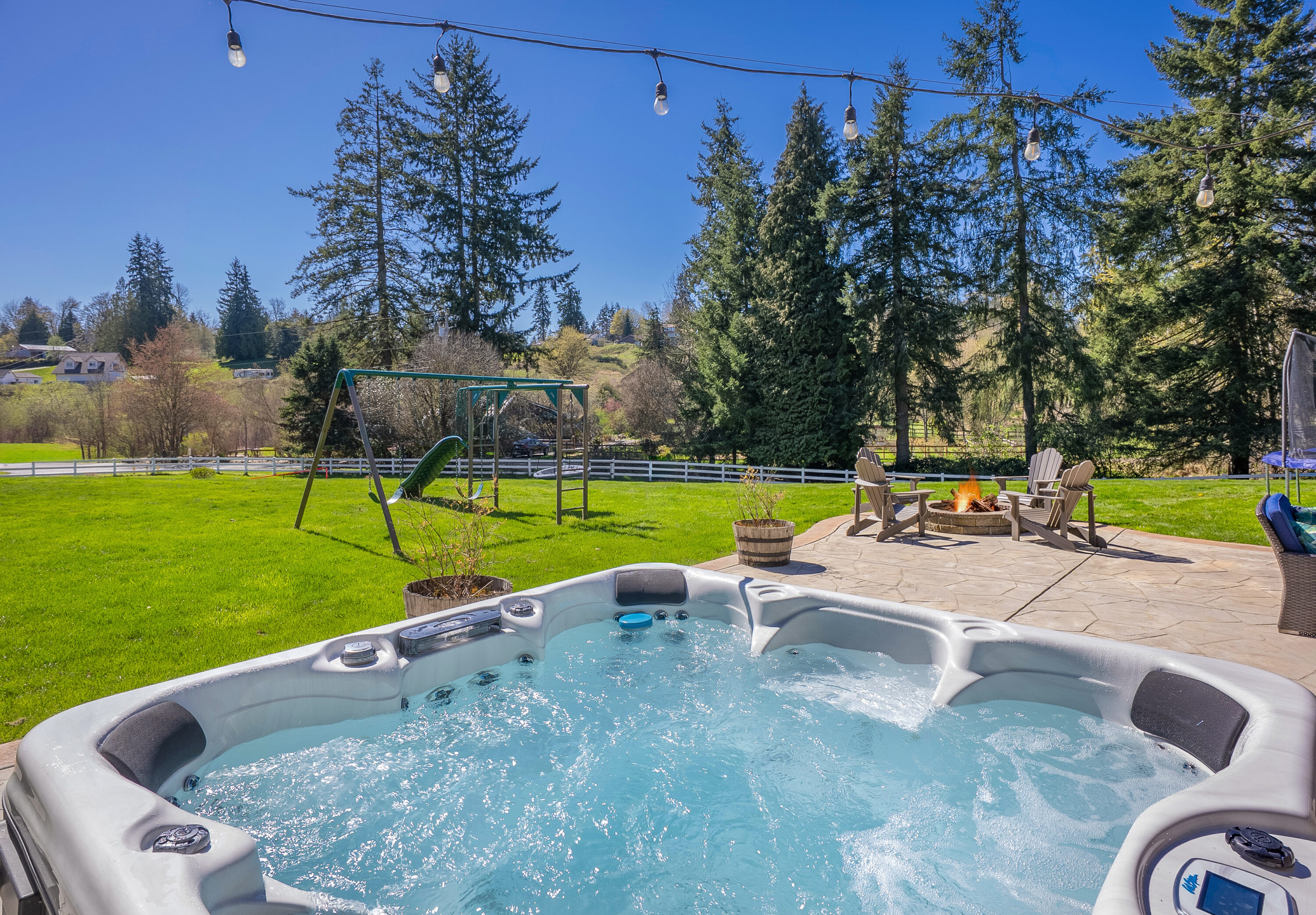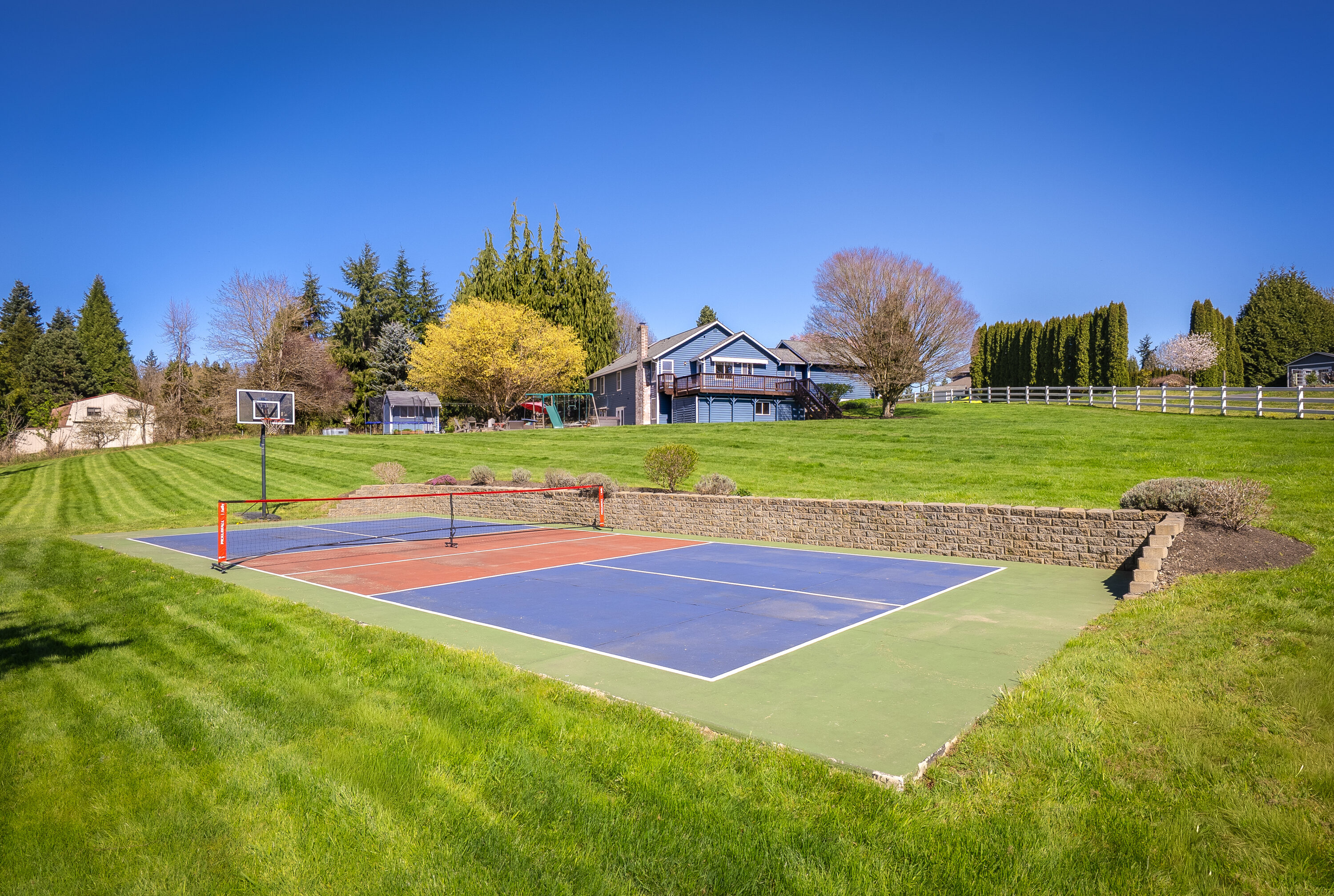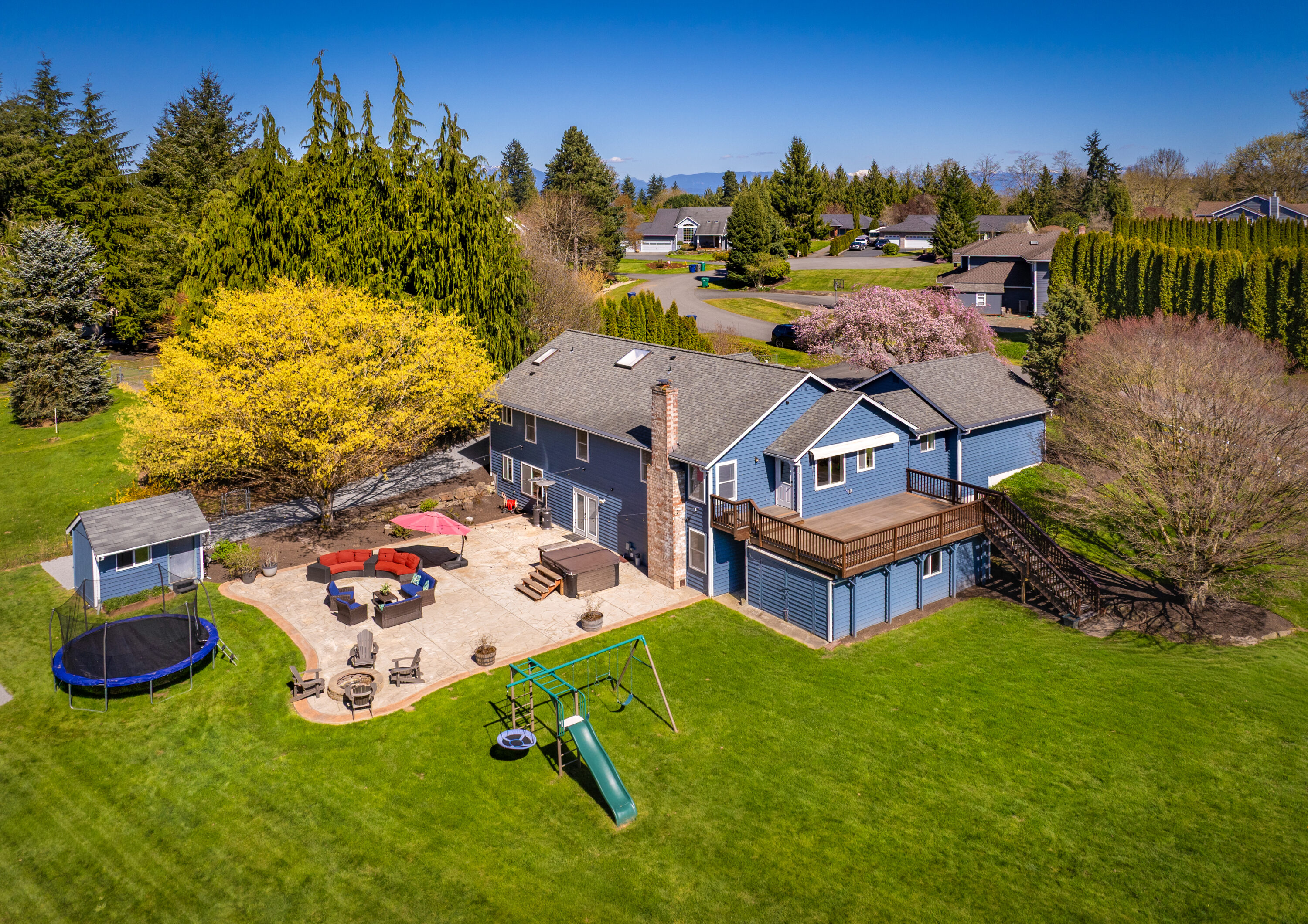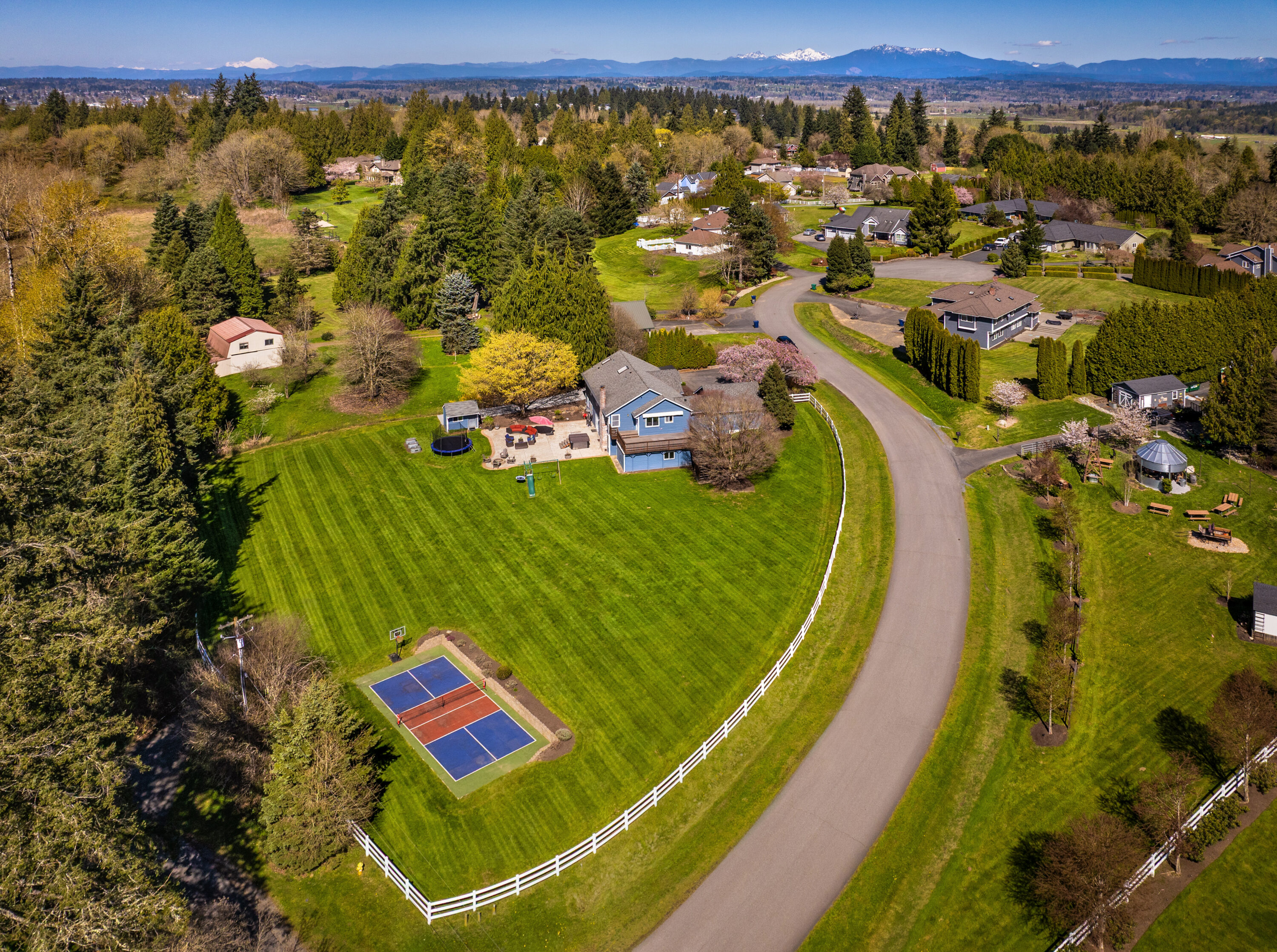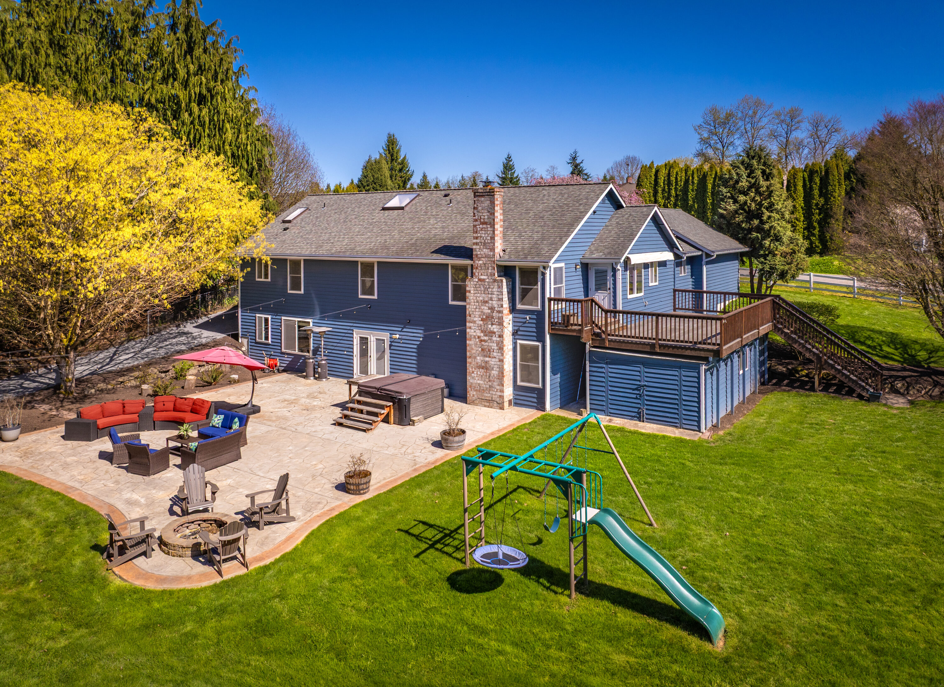 Set on a peaceful one-acre lot moments from downtown Snohomish, this inviting home offers the perfect balance of quiet surroundings and everyday convenience. Tucked down a private road and close to local farms, river beaches, and Snohomish School District schools, the location also provides easy access to HWY 9 for a smooth commute. Inside, recent updates, including new LVP flooring and fresh paint, create a bright, refreshed feel throughout. The spacious entry leads to an oversized office, ideal for working from home or a flexible bonus space. The main living area opens to a cozy living room with a fireplace and an updated kitchen featuring new quartz countertops, backsplash, stainless steel appliances, and a peninsula for casual dining. Step outside to a large upper deck and expansive lower patio with a hot tub, offering plenty of space to gather and entertain, plus enjoy sunny afternoons playing on the sports court or roaming the fully fenced property. The comfortable main-level primary suite with generous closet space and a relaxing en-suite bath. Two additional main-floor bedrooms and a nearby full hall bath create space for growing households. Downstairs, a large bonus room with patio access creates even more living space, complemented by an oversized bedroom and ¾ bath, perfect for guests. A two-car garage, a spacious driveway, ample outdoor storage, and an oversized crawl space enhance the home’s daily functionality.