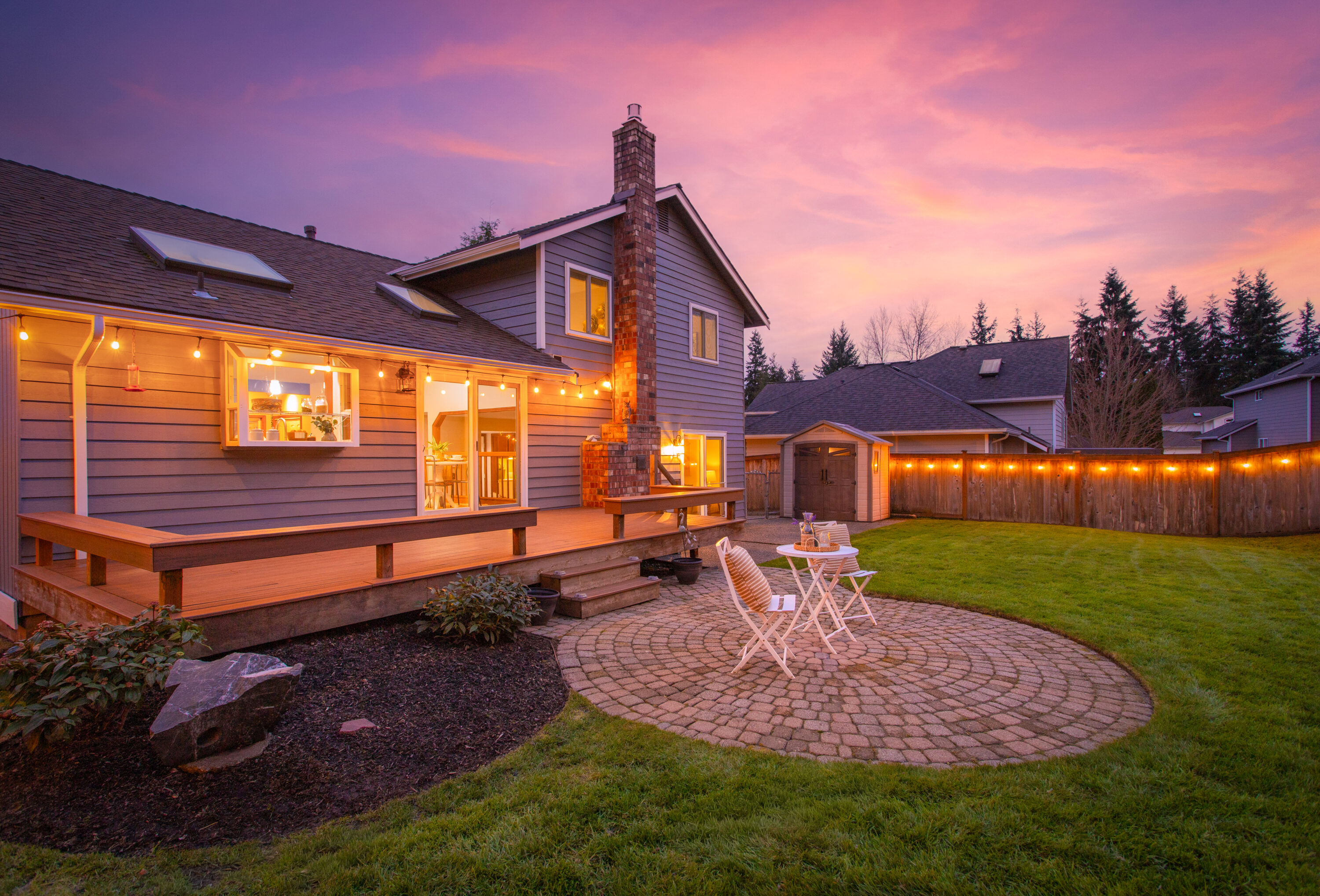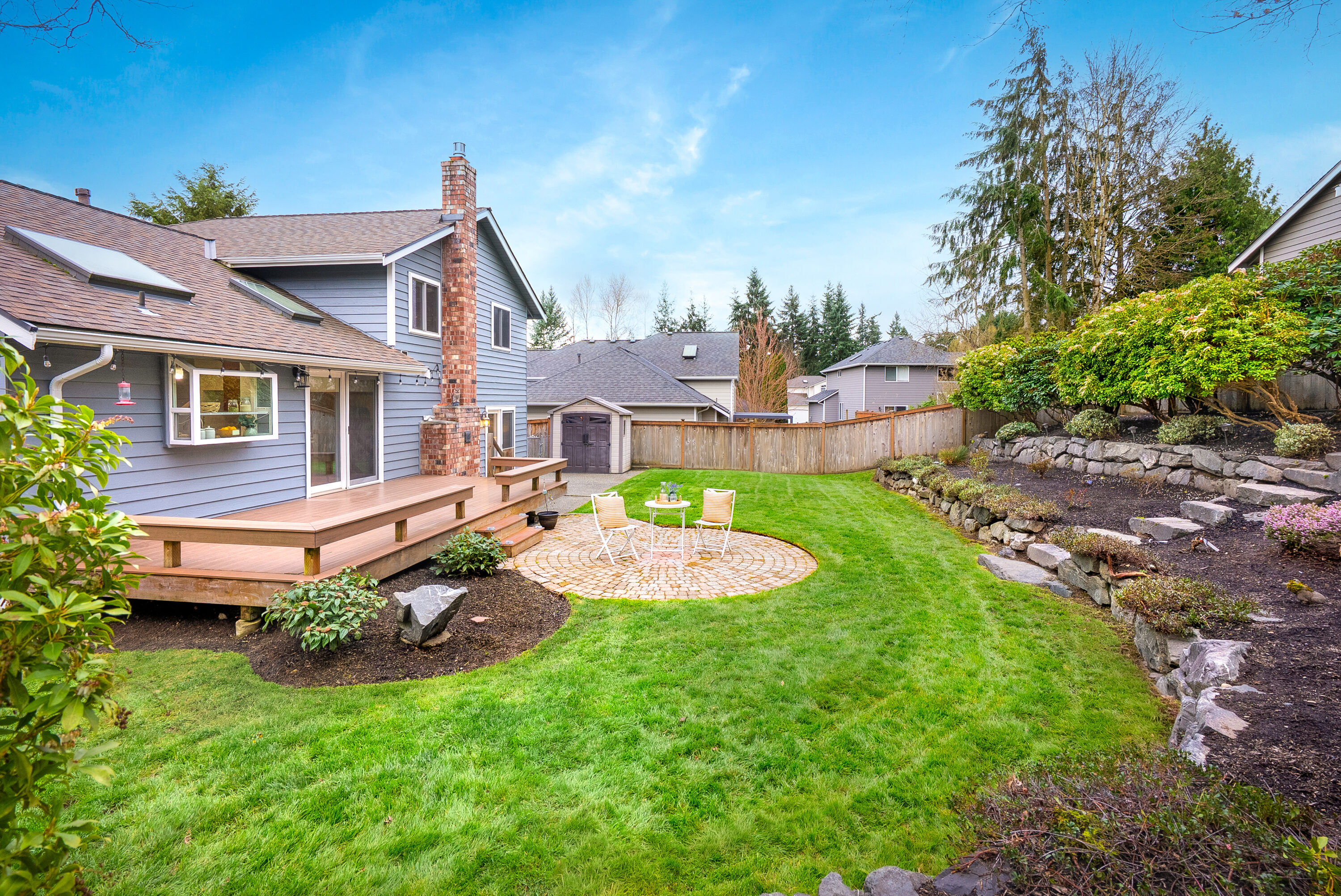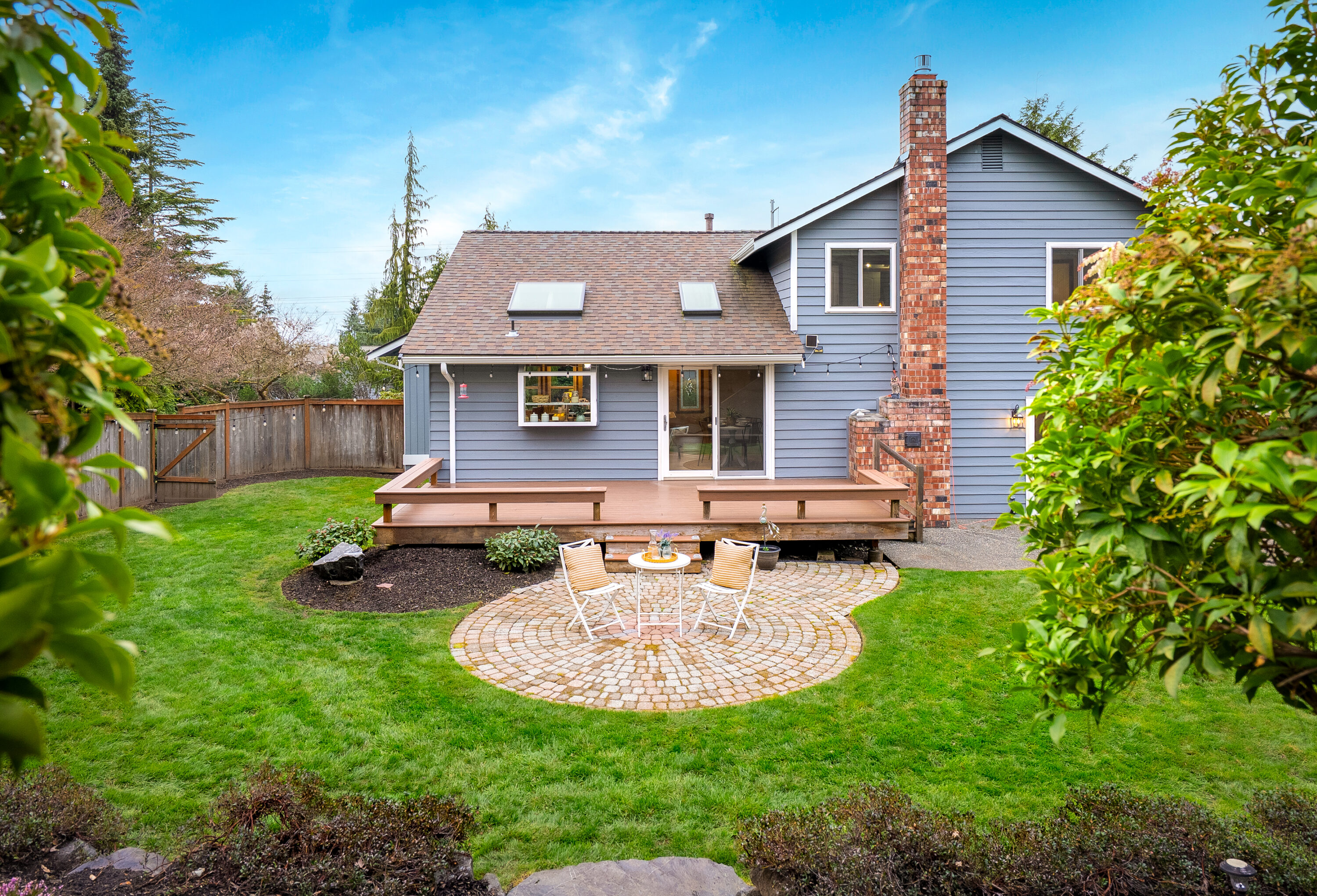 Perfectly situated between Snohomish and Mill Creek, this home offers a prime location with easy access to I-5 and Highway 9, making everyday commuting and errands a breeze. Step inside to a spacious front room, perfect for a formal dining area or a welcoming living space. The bright kitchen features soaring ceilings, a large center island perfect for gathering, ample storage, and a cozy breakfast nook. Extend your living outdoors to the expansive deck, offering plenty of space for barbecues and summer entertaining. The living room invites you to relax around the fireplace, creating a warm and cozy space to unwind and enjoy movie nights at home. The main level is complete with a convenient laundry and bathroom combination, along with nearby access to the garage. Upstairs, the primary suite offers a generous walk-in closet with custom storage and a private five-piece ensuite. Two additional bedrooms and a centrally located full bathroom provide flexibility for guests, a home office, or evolving household needs.