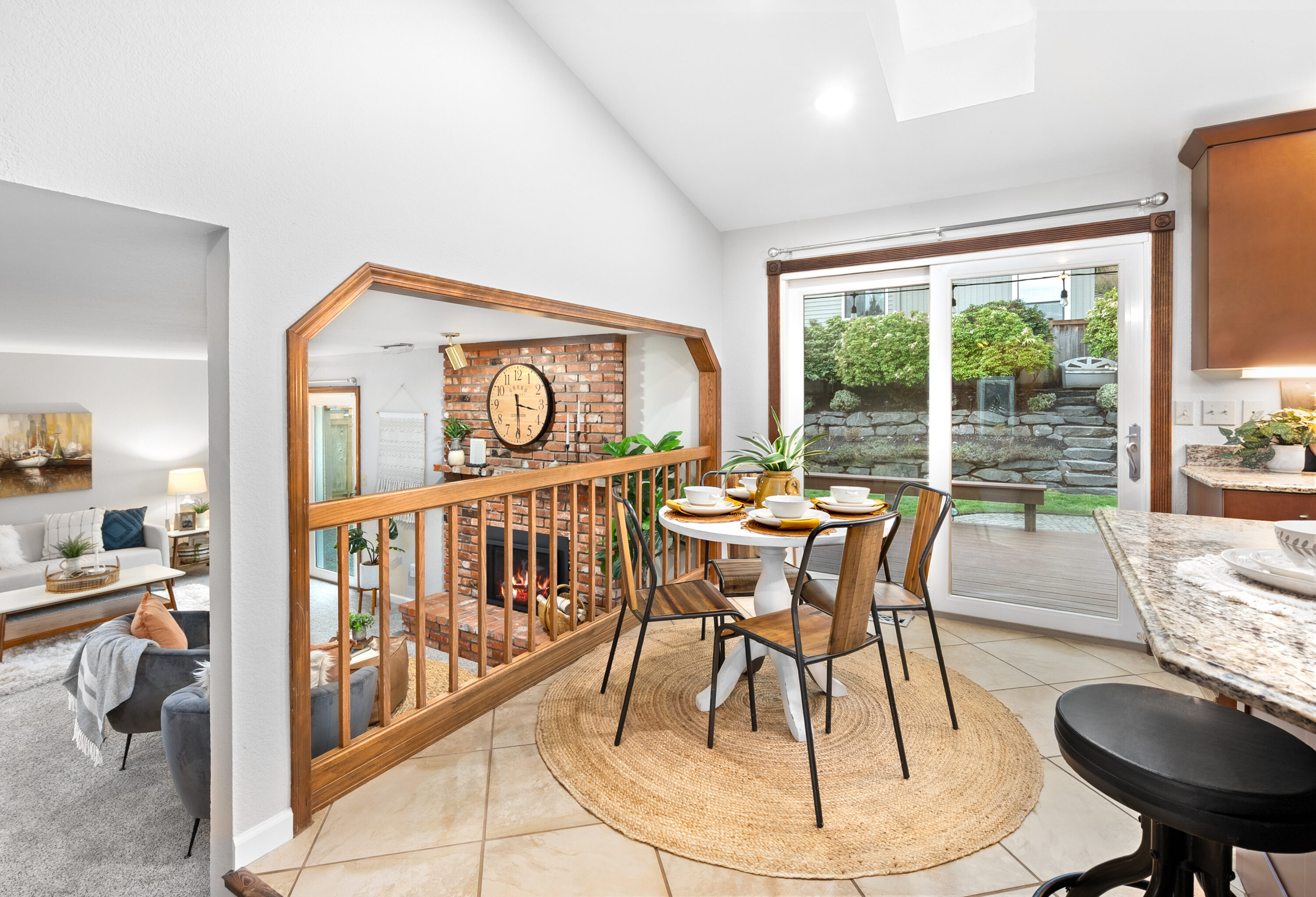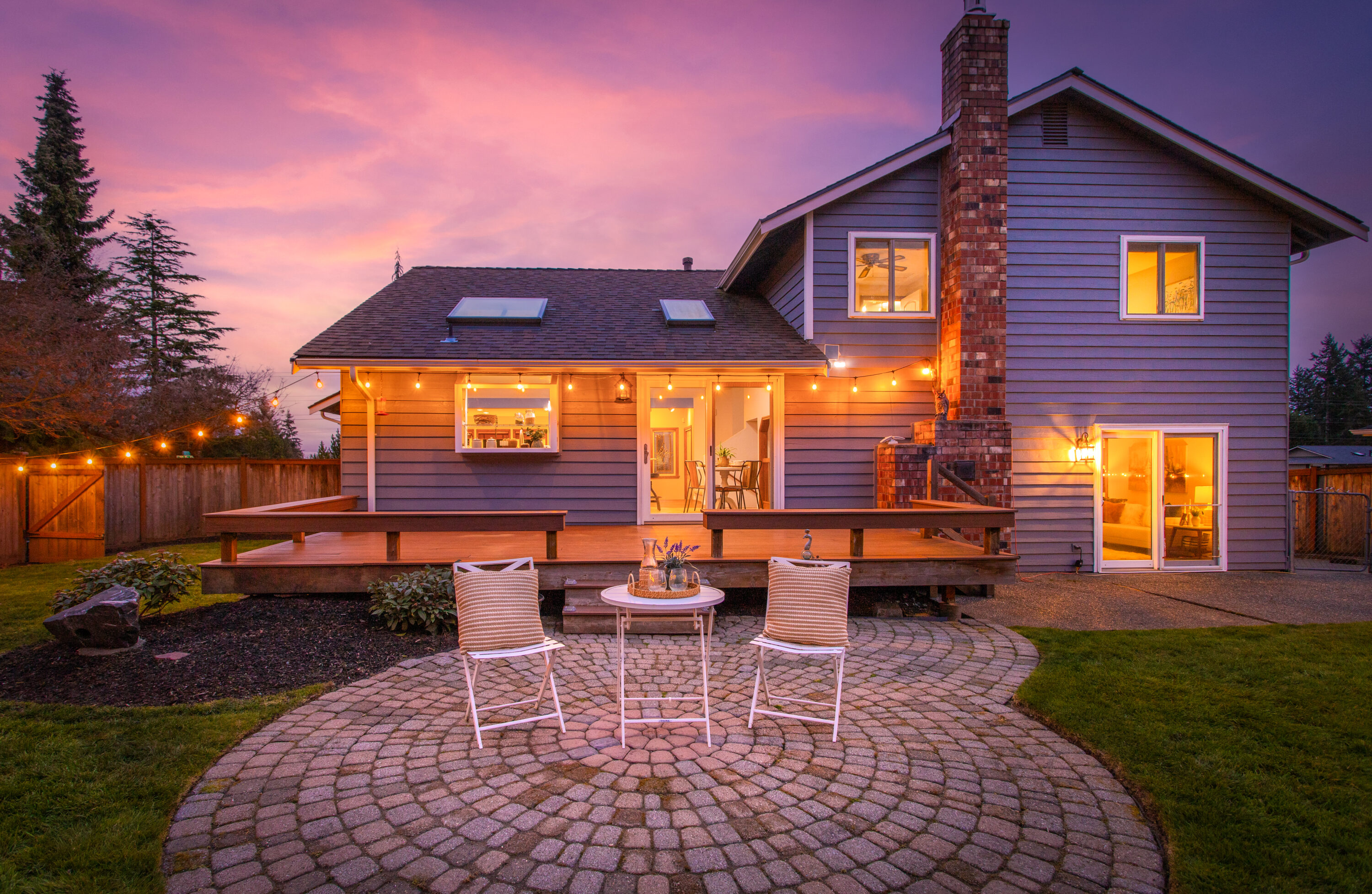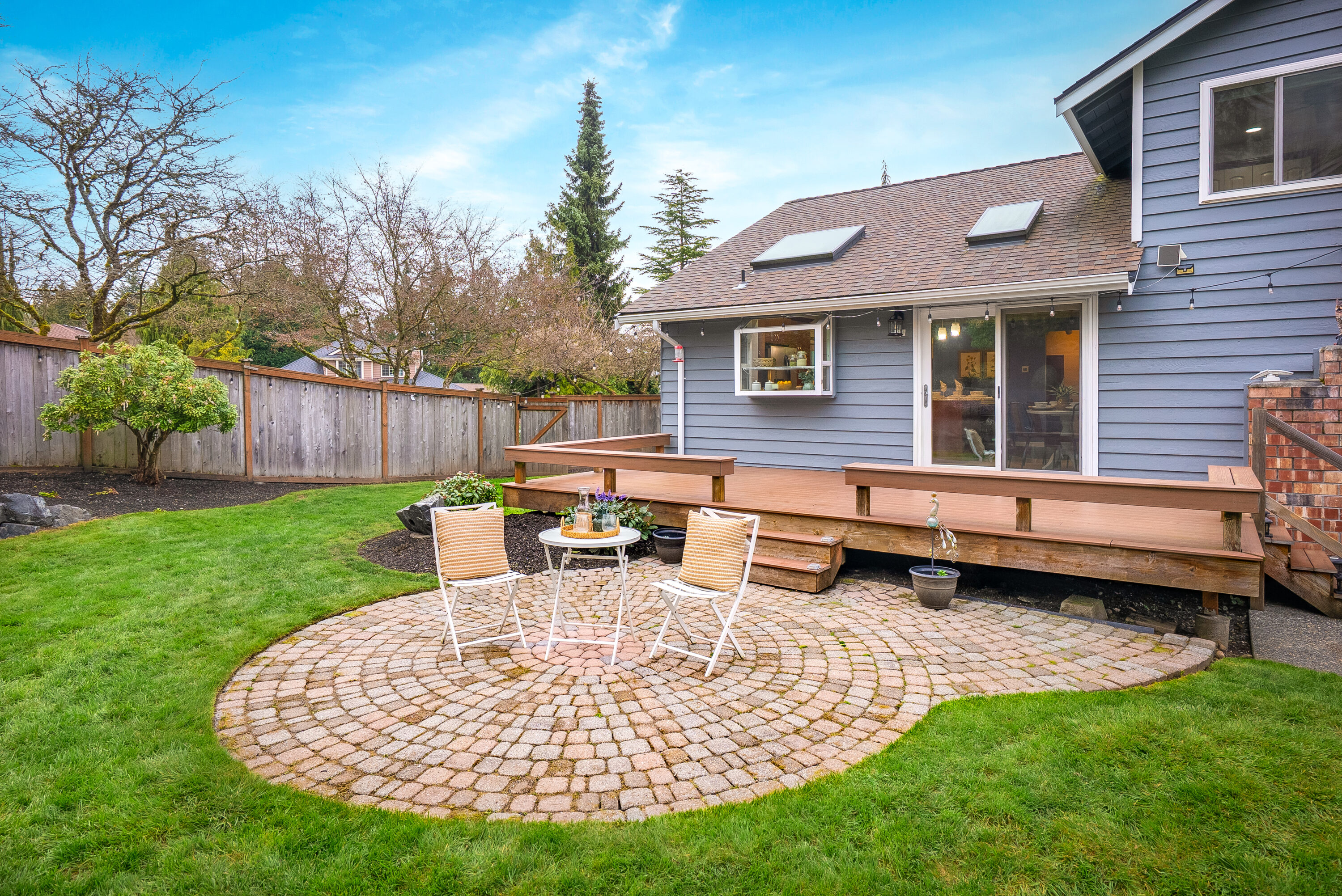 Perfectly situated between Snohomish and Mill Creek, this home offers a prime location with easy access to I-5 and Highway 9, making everyday commuting and errands a breeze. Step inside to a spacious front room, perfect for a formal dining area or a welcoming living space. The bright kitchen features soaring ceilings, a large center island perfect for gathering, ample storage, and a cozy breakfast nook. Extend your living outdoors to the expansive deck, offering plenty of space for barbecues and summer entertaining. The living room invites you to relax around the fireplace, creating a warm and cozy space to unwind and enjoy movie nights at home. The main level is complete with a convenient laundry and bathroom combination, along with nearby access to the garage. Upstairs, the primary suite offers a generous walk-in closet with custom storage and a private five-piece ensuite. Two additional bedrooms and a centrally located full bathroom provide flexibility for guests, a home office, or evolving household needs.