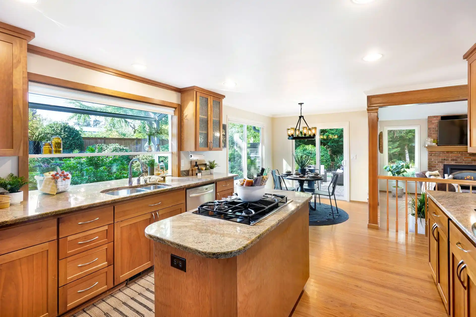 This expertly-maintained Mukilteo rambler, located in the desirable Waterford Park neighborhood, was custom designed by renowned local builder, John Buchan. You will be captivated by the brilliant wainscotting, well-appointed trim, and high-quality craftsmanship that you’ll find throughout. Beautiful and timeless NW design and style in the family room come together to create a warm and inviting atmosphere, ideal for entertaining; impressive details include a soaring cathedral ceiling featuring an exposed wooden beam and a centerpiece natural gas brick fireplace flanked by windows that overlook the lush backyard. The professional kitchen’s stunning natural wood cabinetry will serve as the perfect backdrop to the solid stone counters, spacious island, and luxury stainless steel appliances. The thoughtful floorplan includes an intimate formal dining & living room, an office or guest suite with private patio access, a generous primary bedroom boasting a five-piece ensuite, and an oversized two-car garage with plenty of space for storage. Look forward to having multiple ways to entertain and relax outdoors with a covered sitting area in the front and a peaceful, tree-lined backyard. Host the ultimate BBQs on the spacious paver patio, spend time gardening, or playing yard games on the expansive, well-manicured lawn. Best of all, this premier neighborhood is just moments away from the best that Mukilteo offers, including the Harbor Pointe Golf Club, Paine Field, Boeing, local schools, Big Gulch Park, Picnic Pointe Park, the Mukilteo-Clinton ferry terminal, and Lighthouse Park.