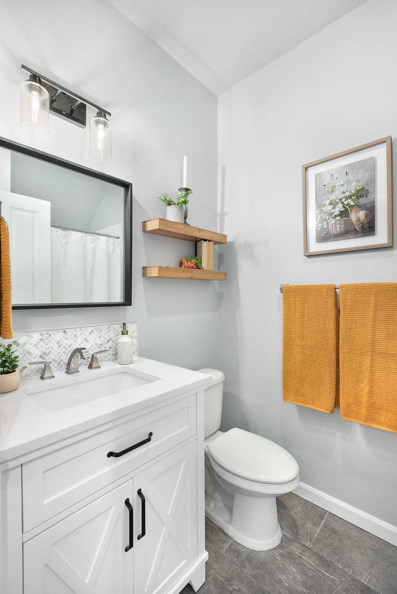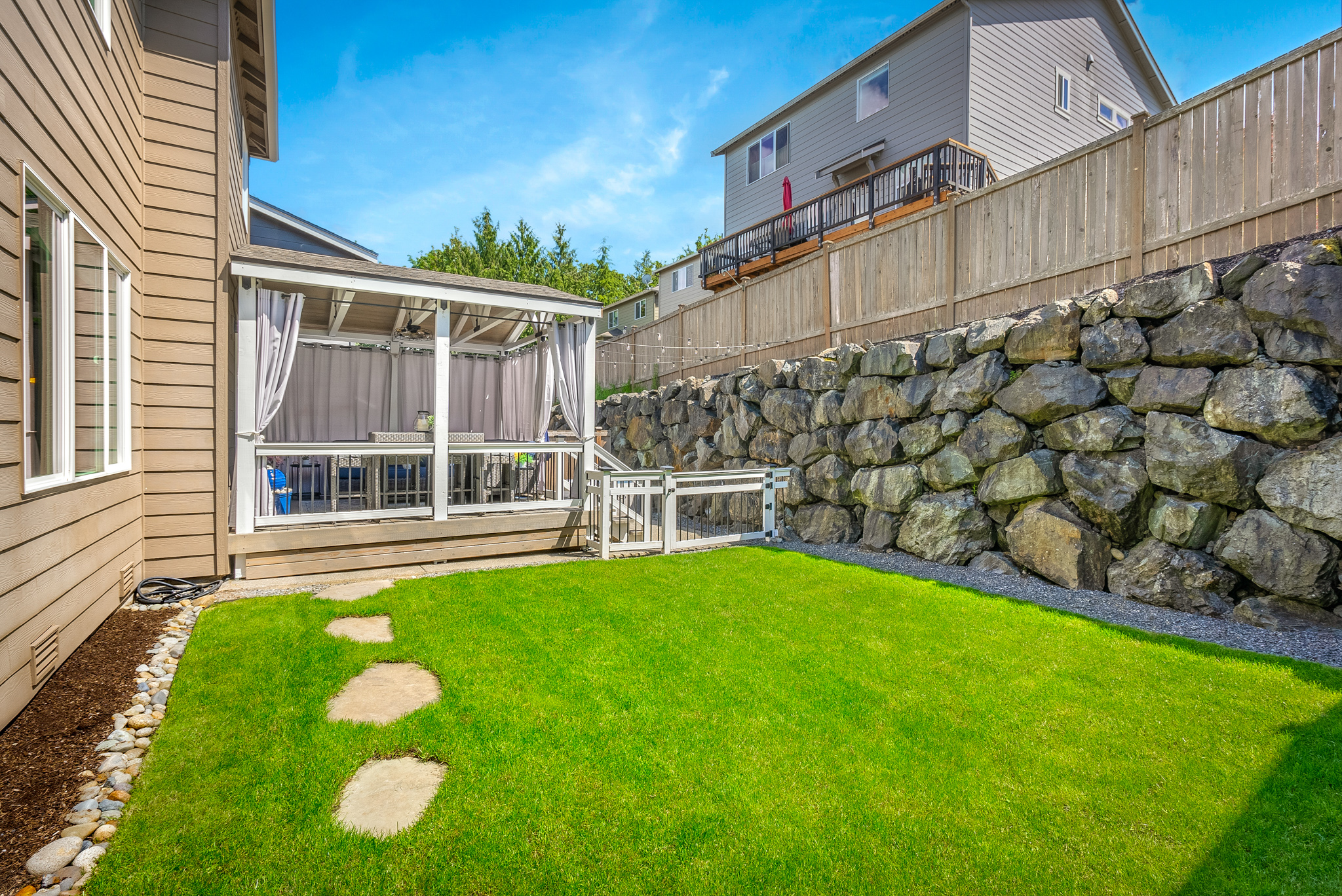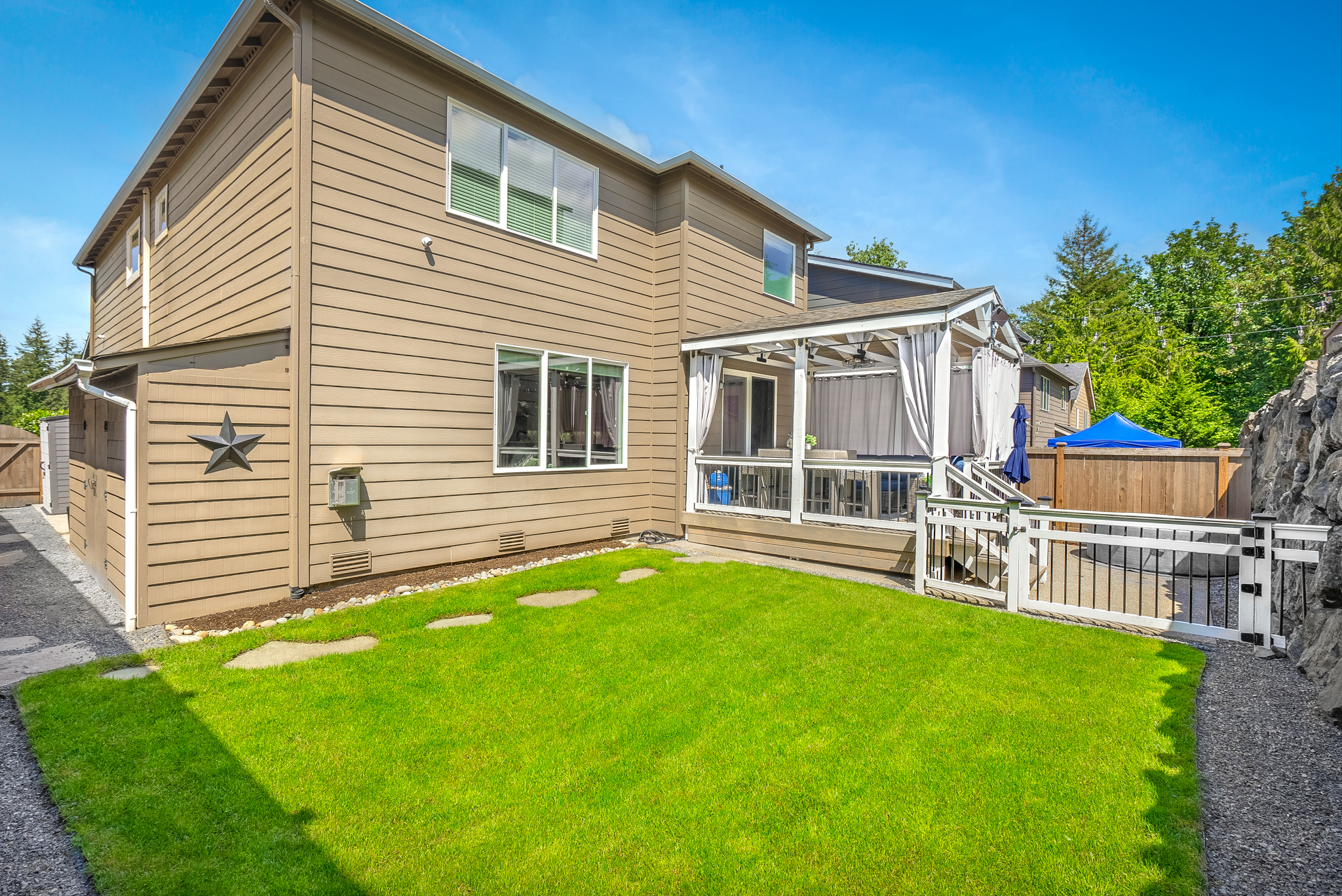 Nestled in the heart of Lake Stevens, this beautifully updated home blends chic, contemporary finishes with everyday functionality. Ideally located near grocery shopping, local dining, schools, and the lake’s popular beaches, daily conveniences and recreation are always within easy reach. Inside, durable LVP flooring flows throughout the main level, guiding you into an open-concept living and dining space. The spacious kitchen shines with soft-close cabinetry, quartz countertops, and additional pantry storage, while the living room is anchored by a cozy fireplace. Step outside to enjoy the covered patio and fully fenced, low-maintenance backyard. A main floor bedroom with a nearby ADA-accessible bath creates the perfect setup for multigenerational living or comfortable guest accommodations, complemented by a stylishly updated laundry room. Upstairs, retreat to the primary suite featuring a relaxing 5-piece bath with soaking tub and a large walk-in closet. Three additional bedrooms and a full hall bath ensure room for all, while a generous bonus room awaits your dream entertainment space, playroom, or home theater.