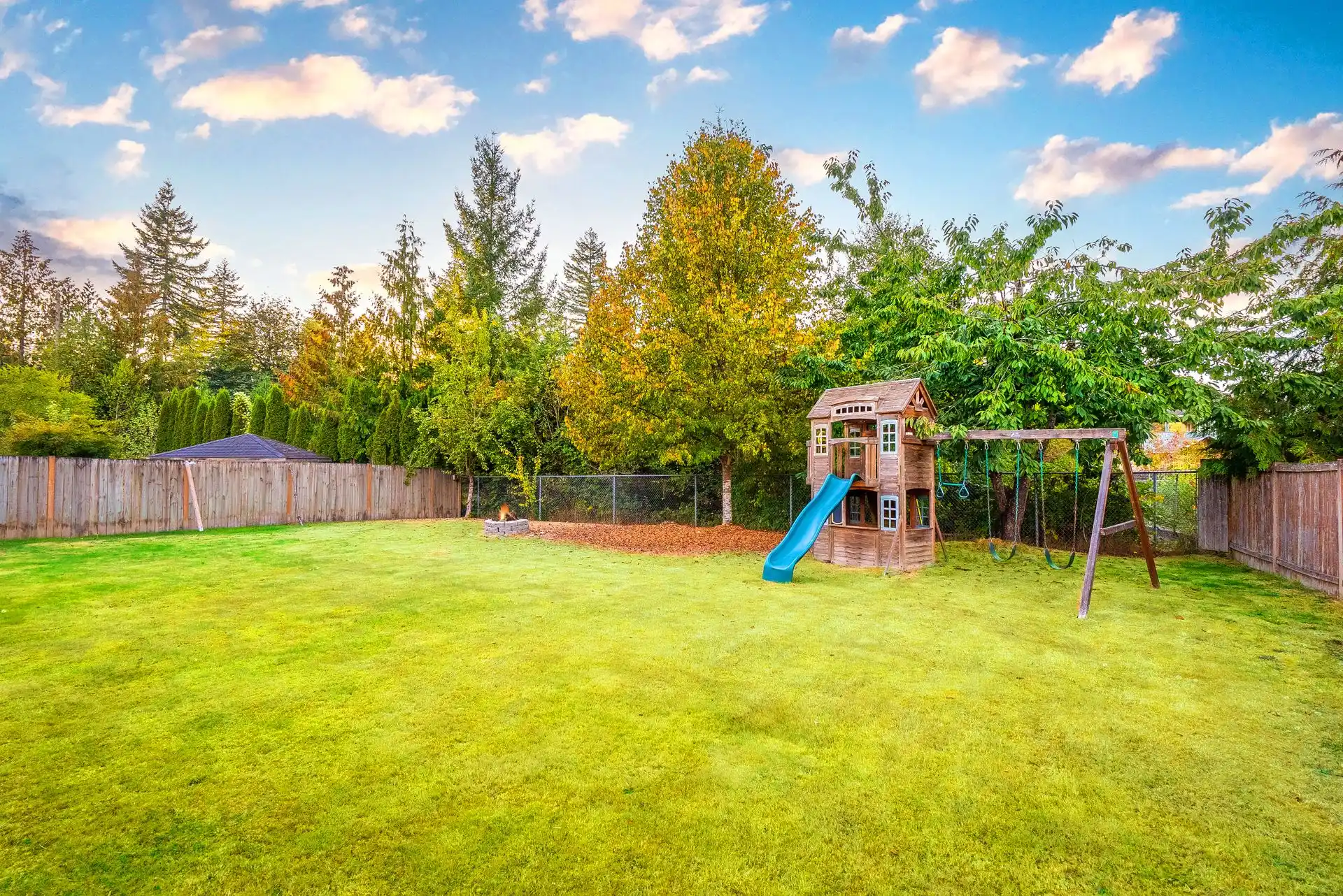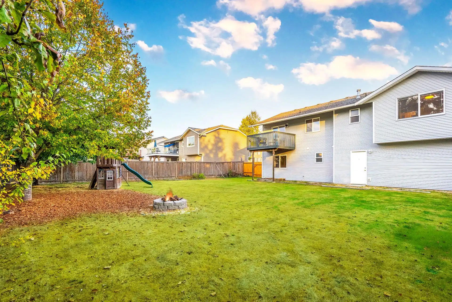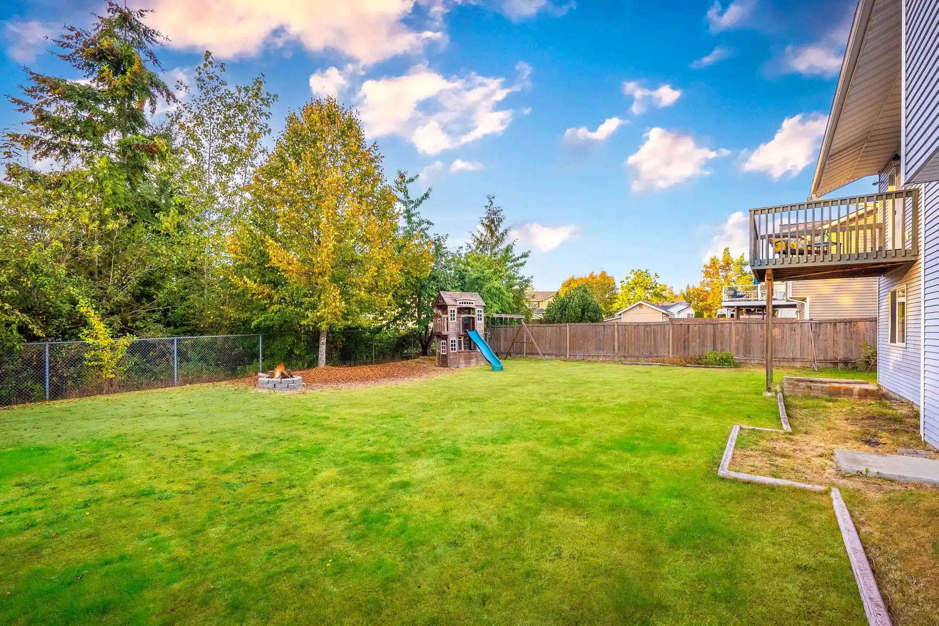 - Fully-Fenced, Flat Backyard w/ Fire pit + Deck