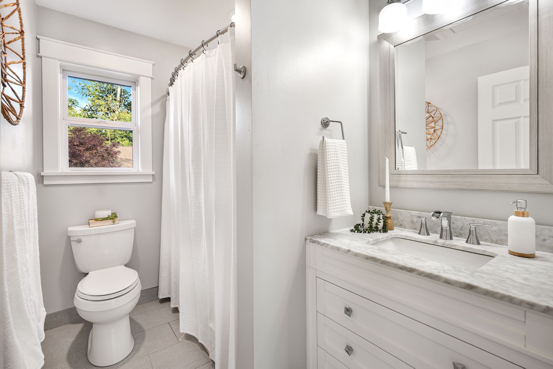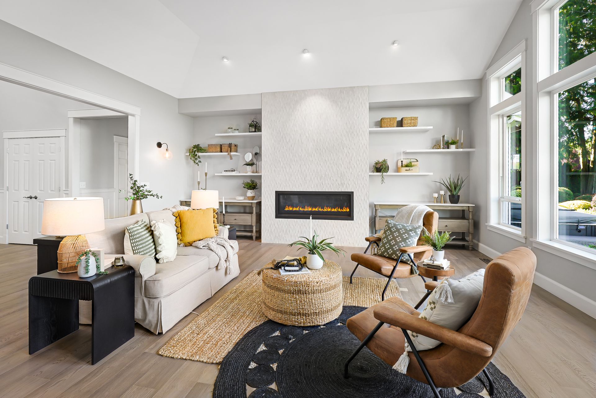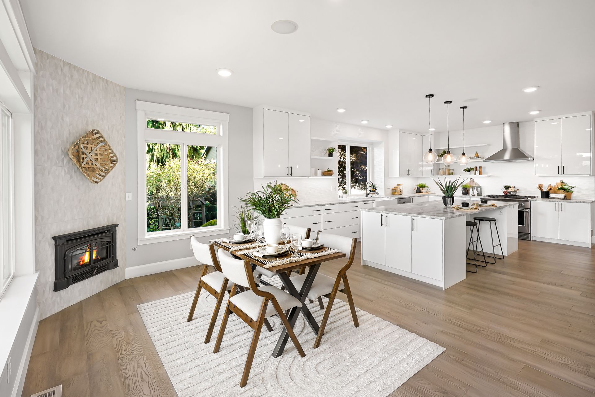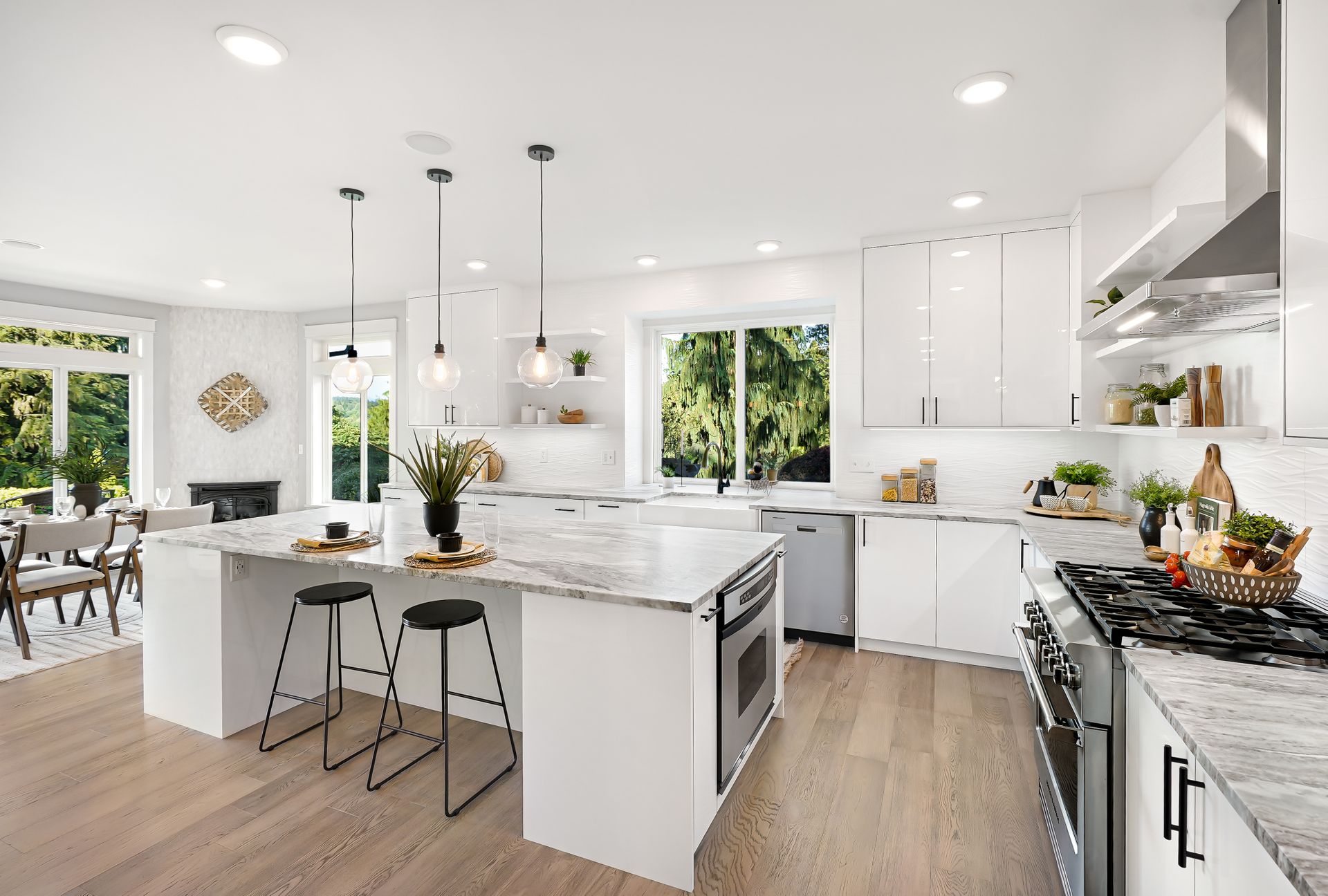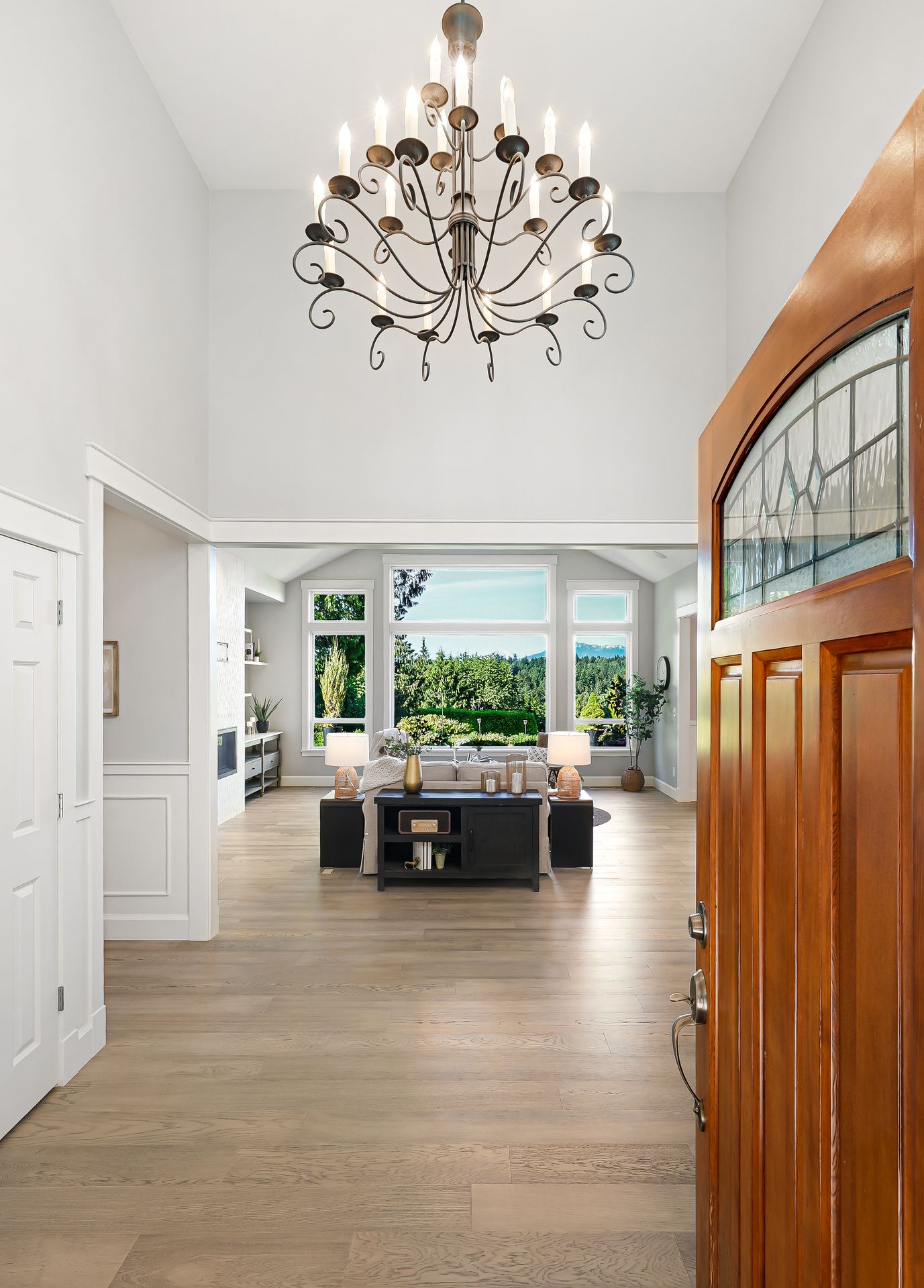 Welcome to your private Snohomish sanctuary, where traditional charm meets modern luxury. This exquisitely updated home is nestled on a meticulously landscaped property filled with vibrant native plants and lush greenery, creating a serene, park-like setting. A picturesque wraparound porch sets the tone for the tranquility that awaits inside. Step through the front door to find a wall of windows flooding the great room with natural light and breathtaking mountain views. The elegant living space is anchored by a stylish fireplace, perfect for cozy evenings and holiday gatherings.