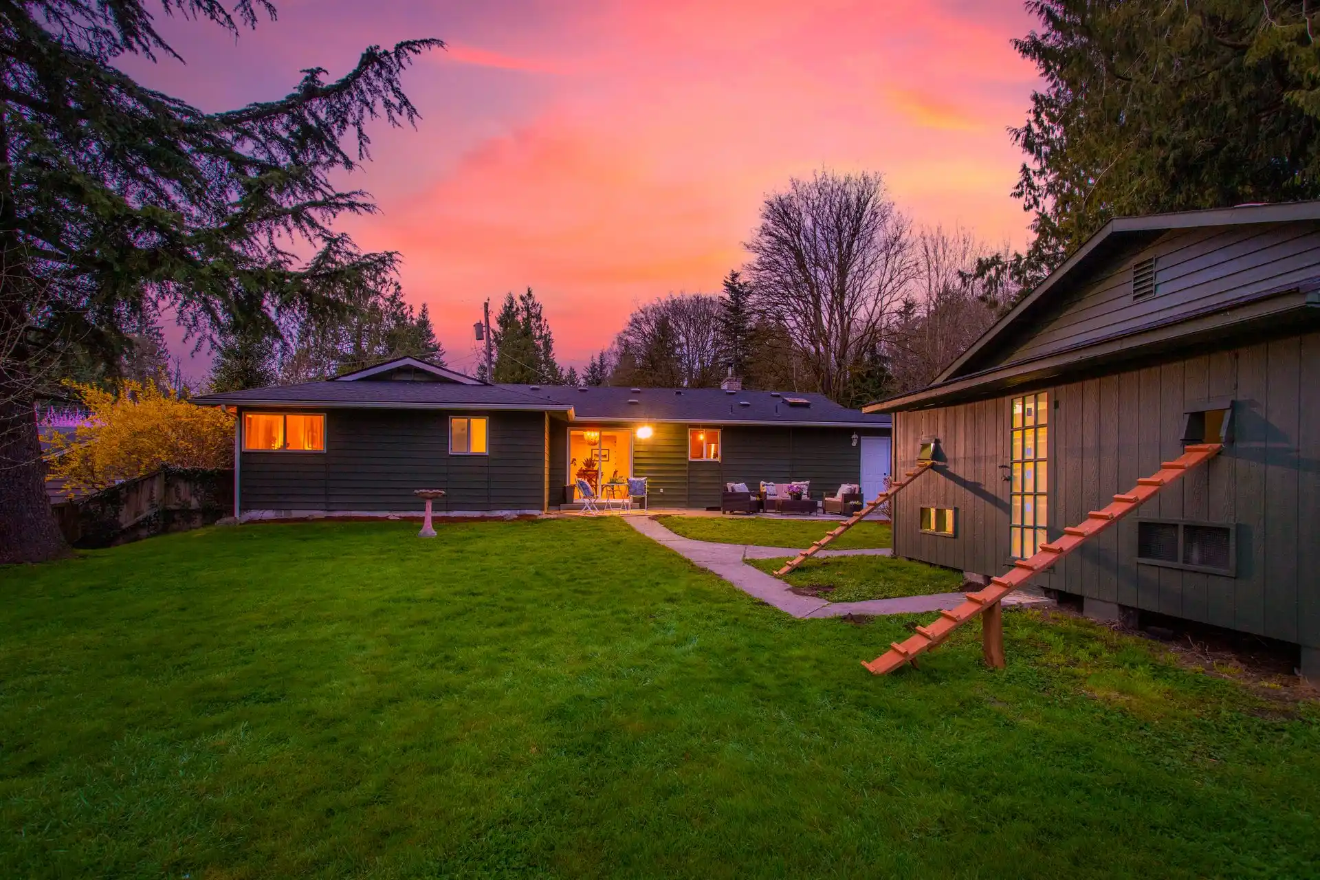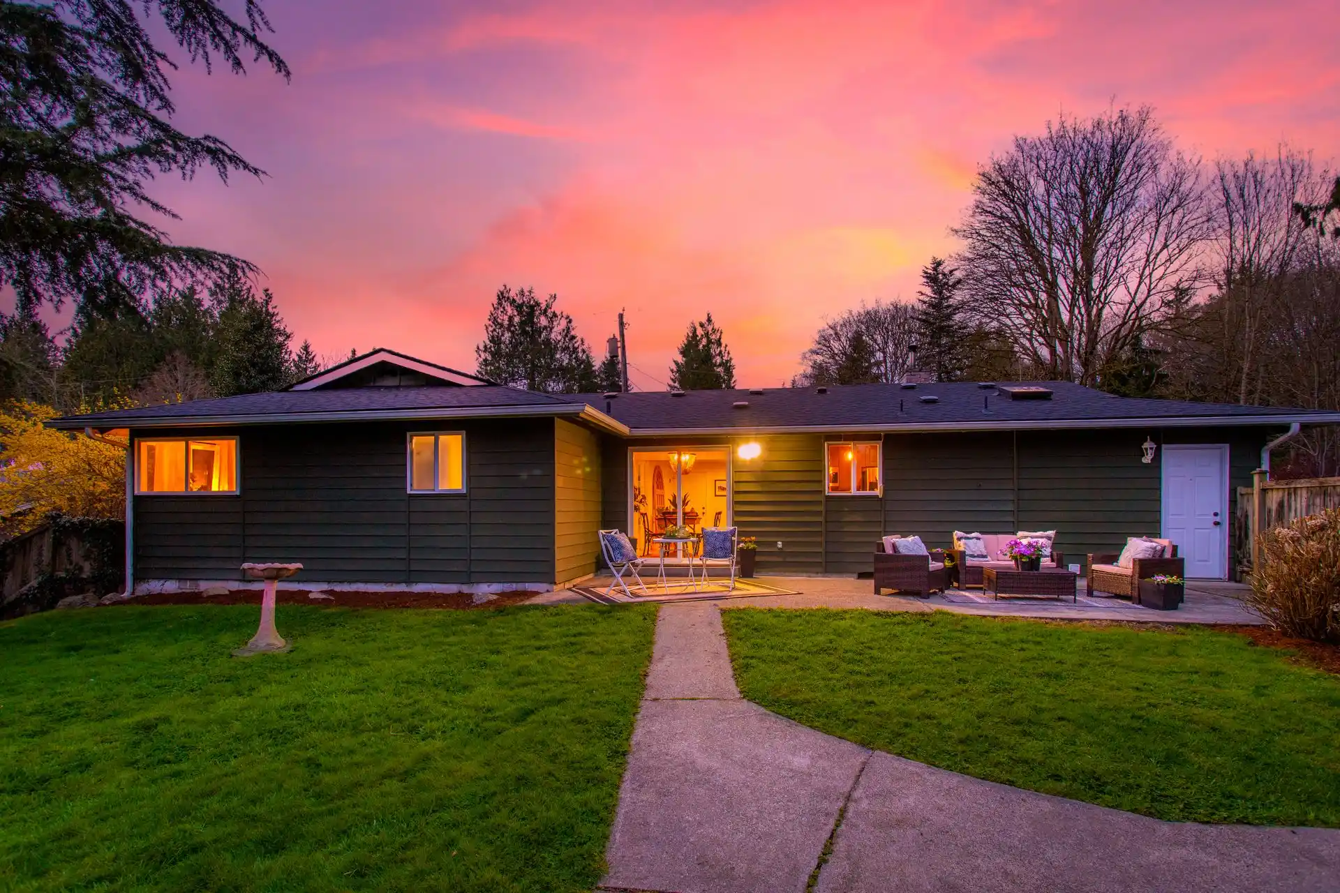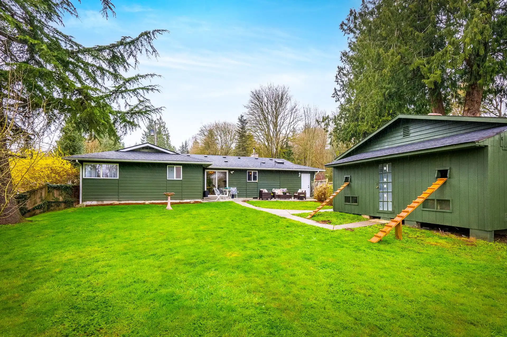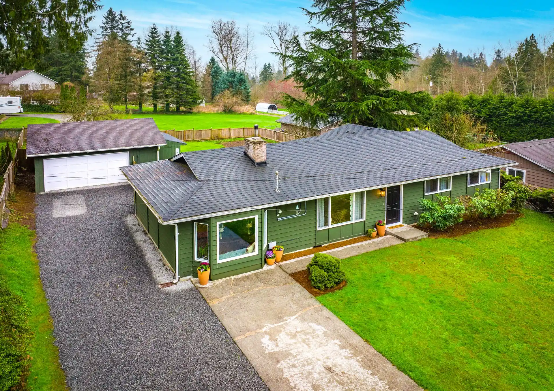 This renovated Snohomish rambler brings you Southwest charm, expert updates, and contemporary finishes. Upon entering, your eyes are immediately drawn to the freshly refinished hardwood floors and the warm cedar accent wall in the living room. You’ll love cozying up near the wood-burning stove for all of the rainy PNW days ahead. The easy floor plan flows effortlessly into the casual dining area and modern kitchen featuring all-new luxury stainless steel appliances, quartz countertops, soft-close cabinetry, and a unique Terracotta backsplash. Continue into the sizable bonus space, where vaulted cedar ceilings and a bay window with built-in bench seating enhance the room with an abundance of natural light. Retreat to any of the three bedrooms, including the oversized main bedroom with picture windows that overlook the yard and a private, custom ensuite. Create memories in the vast backyard by entertaining on the patio, tending to your dream garden, or collecting farm-fresh eggs from the chicken coop. Rounding out the property is a detached two-car garage, the perfect space for the car lover or hobbyist in your life! Best of all, this one-of-a-kind home is less than 10 minutes from Historic Downtown Snohomish, moments to shopping and restaurants (including the town-famous King Charley’s Drive-In), and provides easy access to highways for commuting!