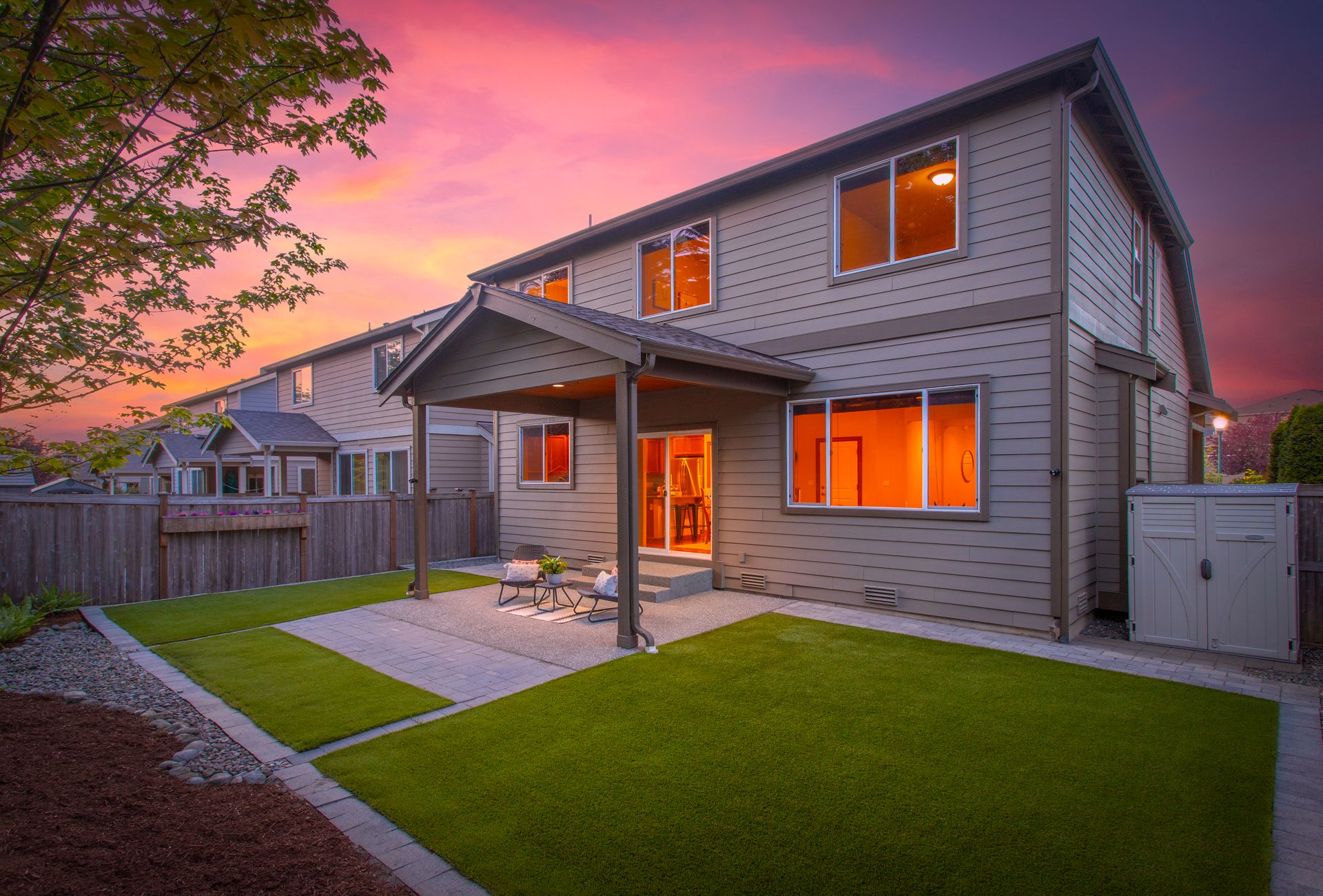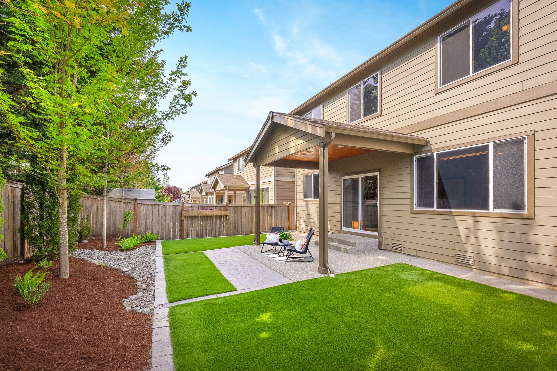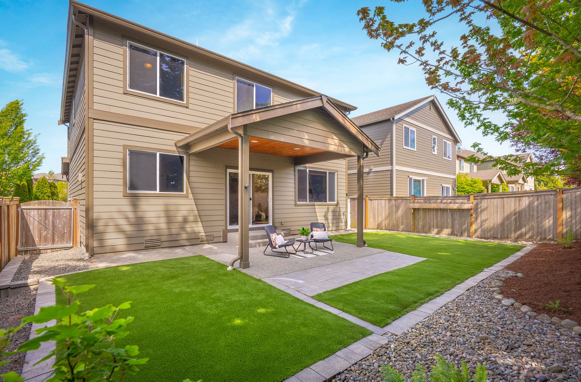 You are welcomed by gleaming hardwood floors guiding you through the main floor into the home’s great room. Unwind by the stone fireplace, awaiting movie nights with loved ones. The kitchen offers plenty of room for a chef’s imagination to bloom, with stunning granite countertops and stainless steel appliances. Step out of your living space to find yourself basking in the afternoon sun in your very own backyard oasis. You will appreciate the low-maintenance and easy upkeep of a turf yard and the covered patio, which is ideal for all seasons.